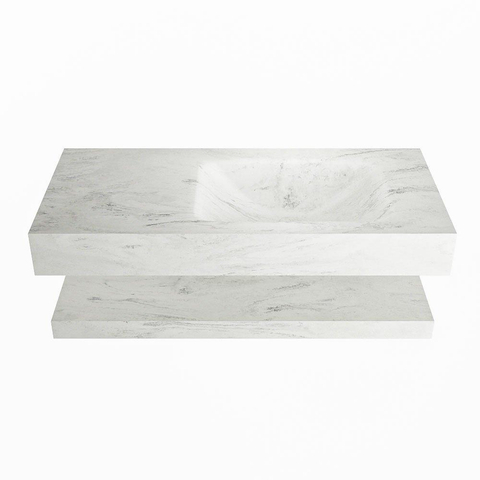 Mondiaz ALAN-DLUX Ensemble de meuble - 100cm - meuble Opalo mat - 0 tiroirs - Lavabo Cloud Opalo suspendu - vasque Droite - 1 trou de robinet