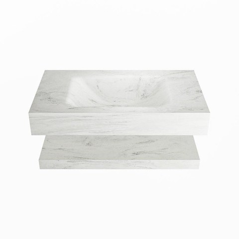 Mondiaz ALAN-DLUX Ensemble de meuble - 80cm - meuble Opalo mat - 0 tiroirs - Lavabo Cloud Opalo suspendu - vasque Centre - 0 trous de robinet