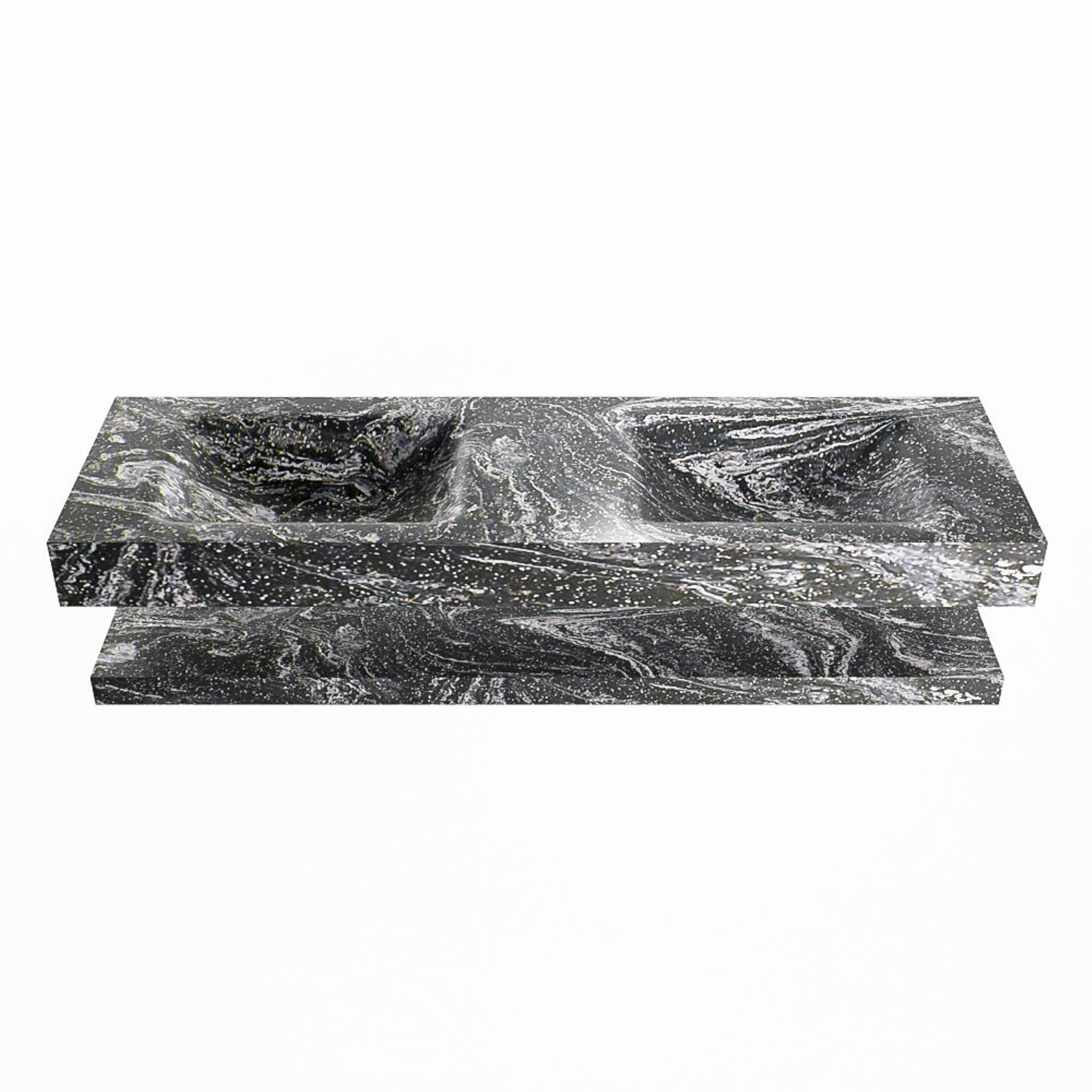 Mondiaz ALAN-DLUX Ensemble de meuble - 150cm - meuble Lava mat - 0 tiroirs - Lavabo Cloud Lava suspendu - vasque Gauche et droite - 2 trous de robinet