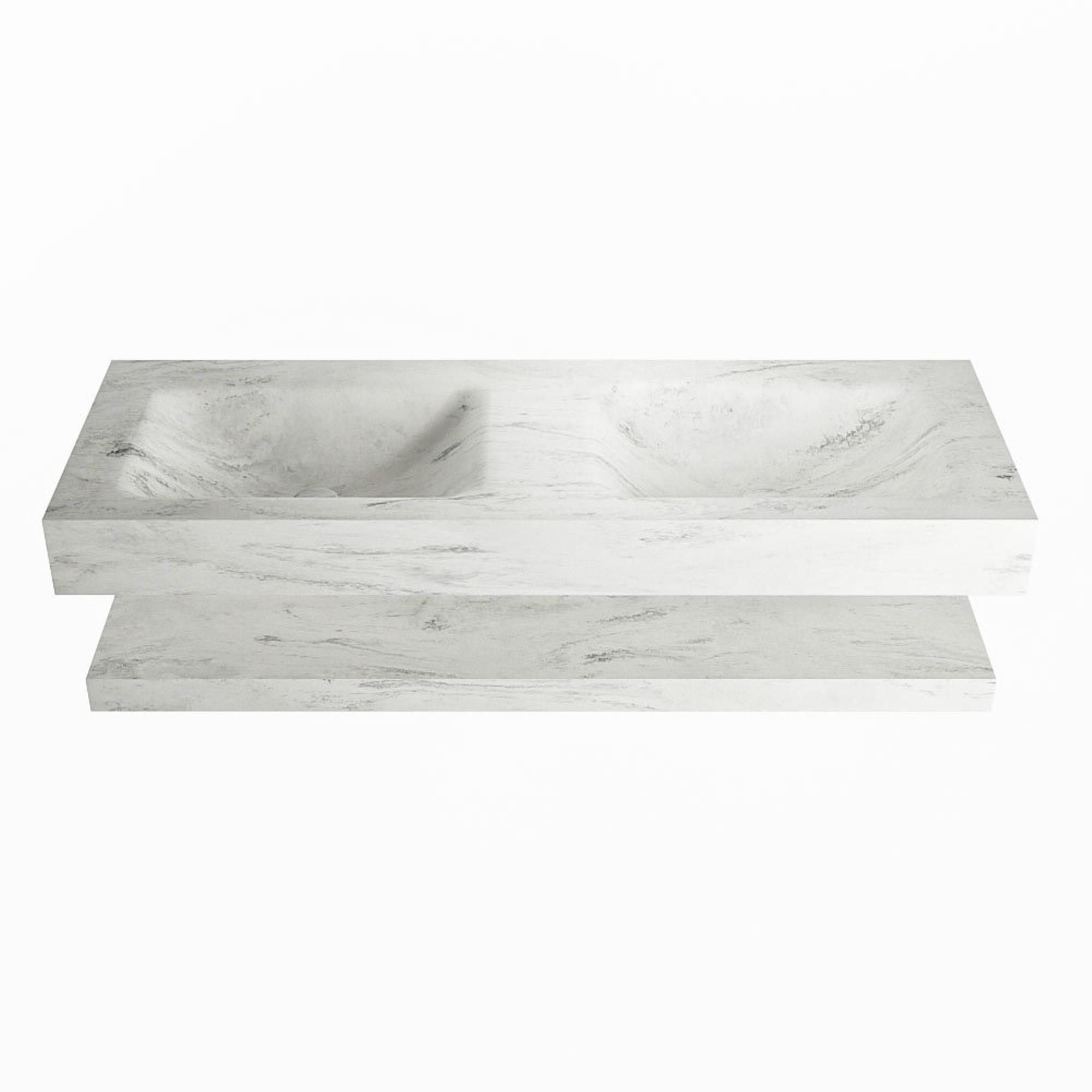 Mondiaz ALAN-DLUX Ensemble de meuble - 130cm - meuble Opalo mat - 0 tiroirs - Lavabo Cloud Opalo suspendu - vasque Gauche et droite - 2 trous de robinet