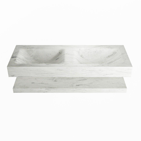 Mondiaz ALAN-DLUX Ensemble de meuble - 120cm - meuble Opalo mat - 0 tiroirs - Lavabo Cloud Opalo suspendu - vasque Gauche et droite - 2 trous de robinet