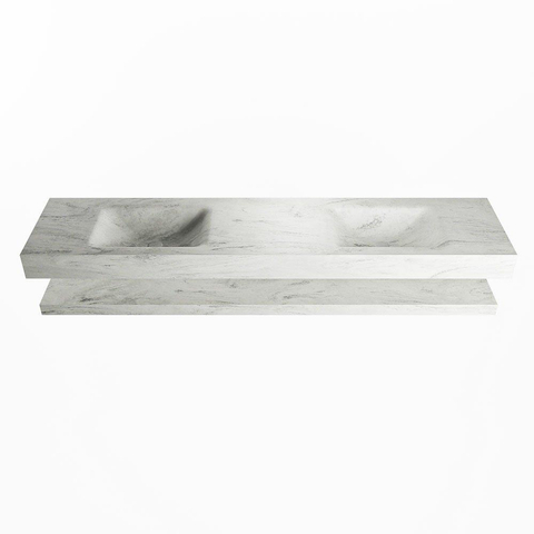 Mondiaz ALAN-DLUX Ensemble de meuble - 200cm - meuble Opalo mat - 0 tiroirs - Lavabo Cloud Opalo suspendu - vasque Gauche et droite - 2 trous de robinet