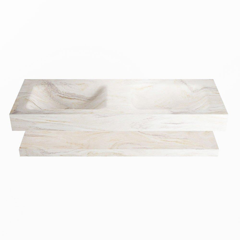 Mondiaz ALAN-DLUX Ensemble de meuble - 130cm - meuble Ostra mat - 0 tiroirs - Lavabo Cloud Ostra suspendu - vasque Gauche et droite - 0 trous de robinet