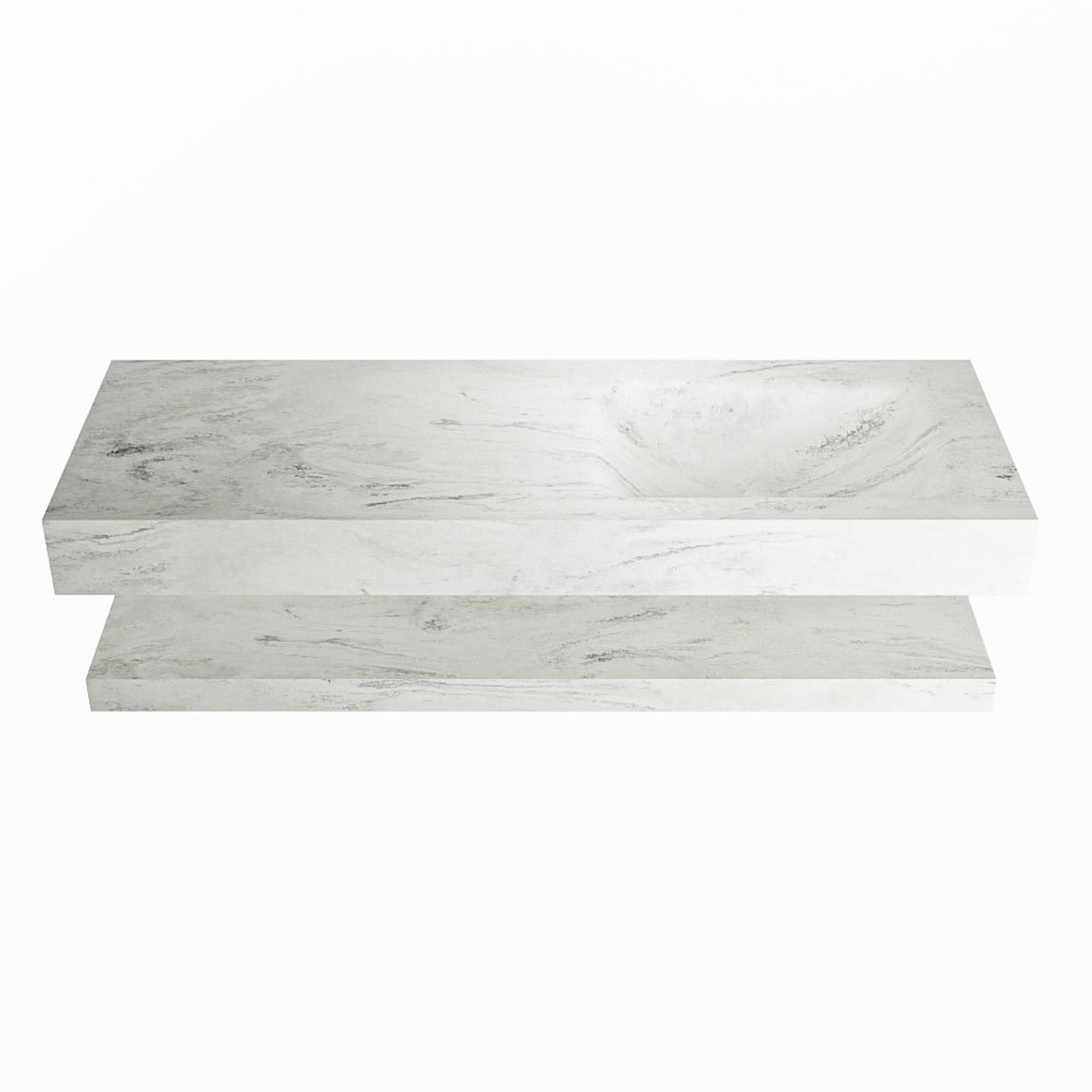 Mondiaz ALAN-DLUX Ensemble de meuble - 130cm - meuble Opalo mat - 0 tiroirs - Lavabo Cloud Opalo suspendu - vasque Droite - 0 trous de robinet