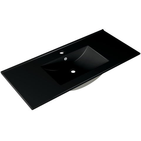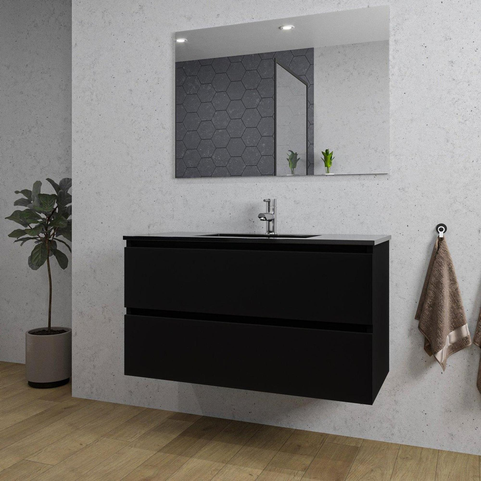Saniclass Chaci Ensemble meuble de salle de bains - 100x46x55cm - lavabo céramique noir - 1 vasque - 1 trou de robinet - 2 tiroirs - noir mat