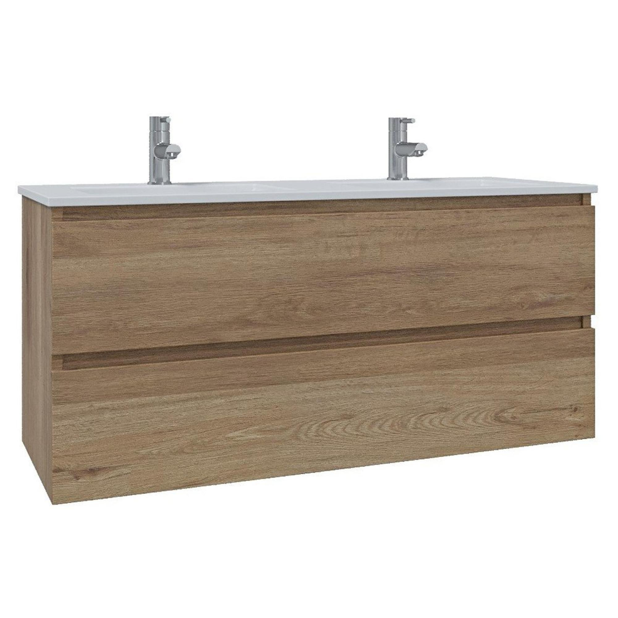 Saniclass Chaci Ensemble meuble de salle de bains - 120x46x57cm - lavabo en céramique blanc - 2 vasques - 2 trous de robinet - 2 tiroirs - chêne
