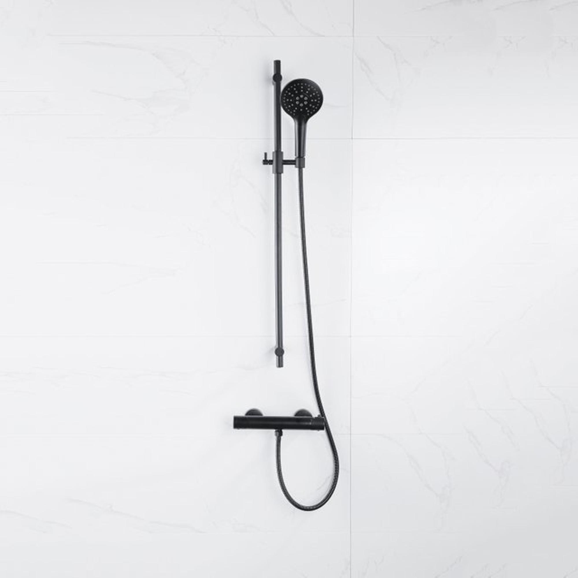 Fortifura Calvi Ensemble de douche barre curseur avec douchette ronde, flexible lisse et robinet de douche Noir mat