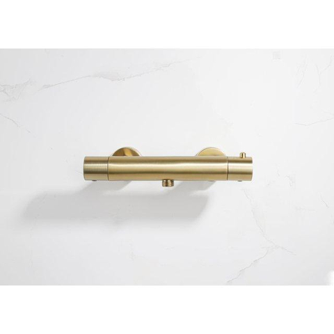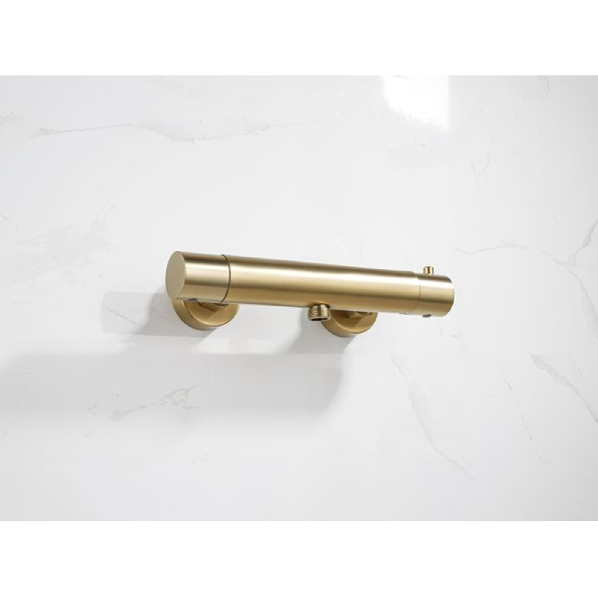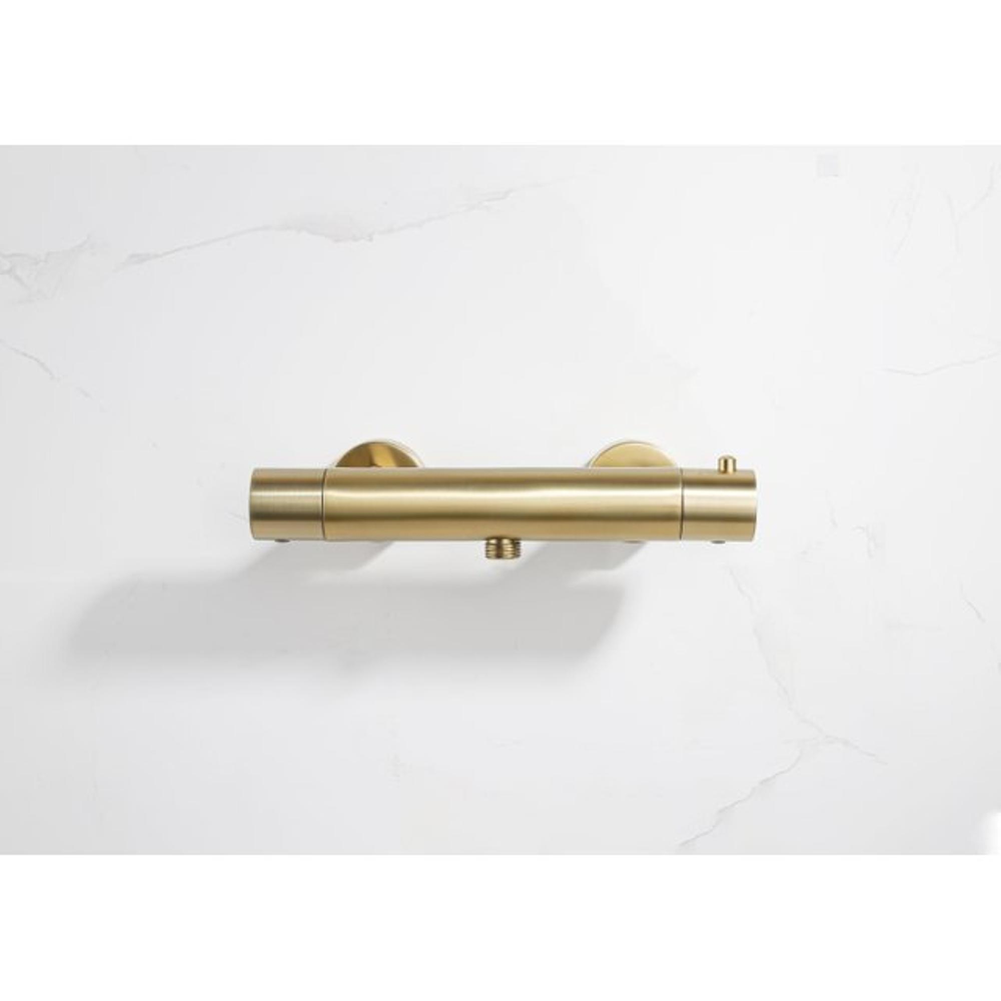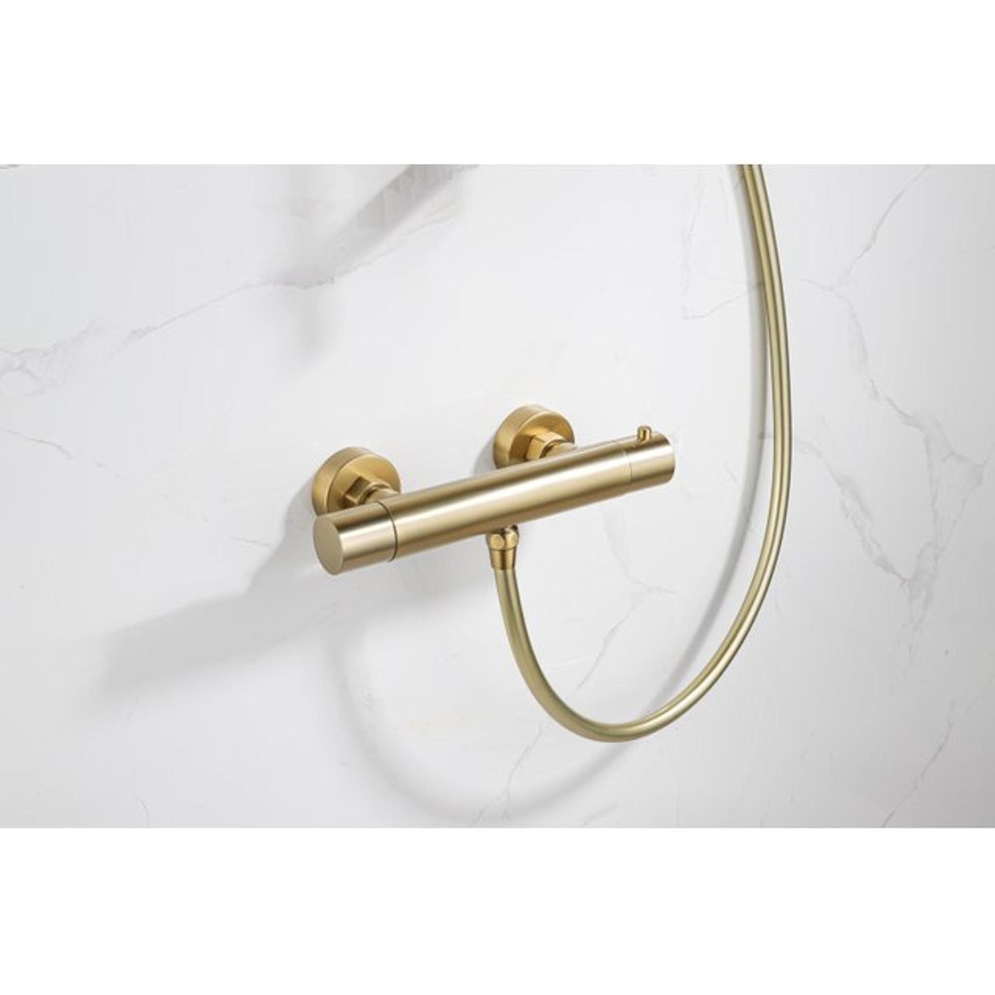 Fortifura Calvi Ensemble de douche barre curseur avec douchette ronde, flexible lisse et robinet de douche Laiton brossé PVD