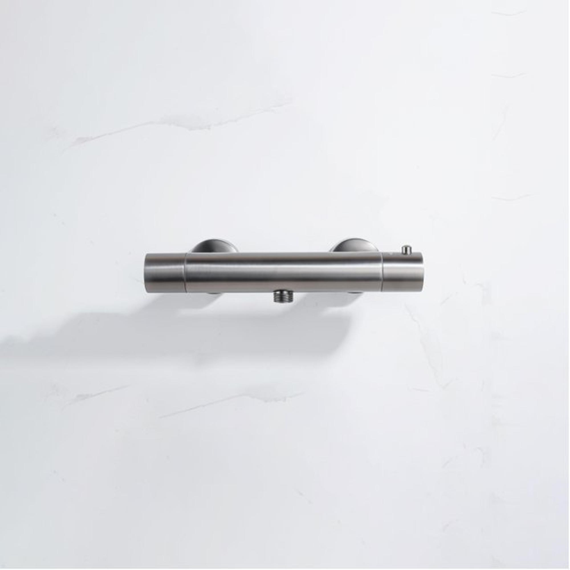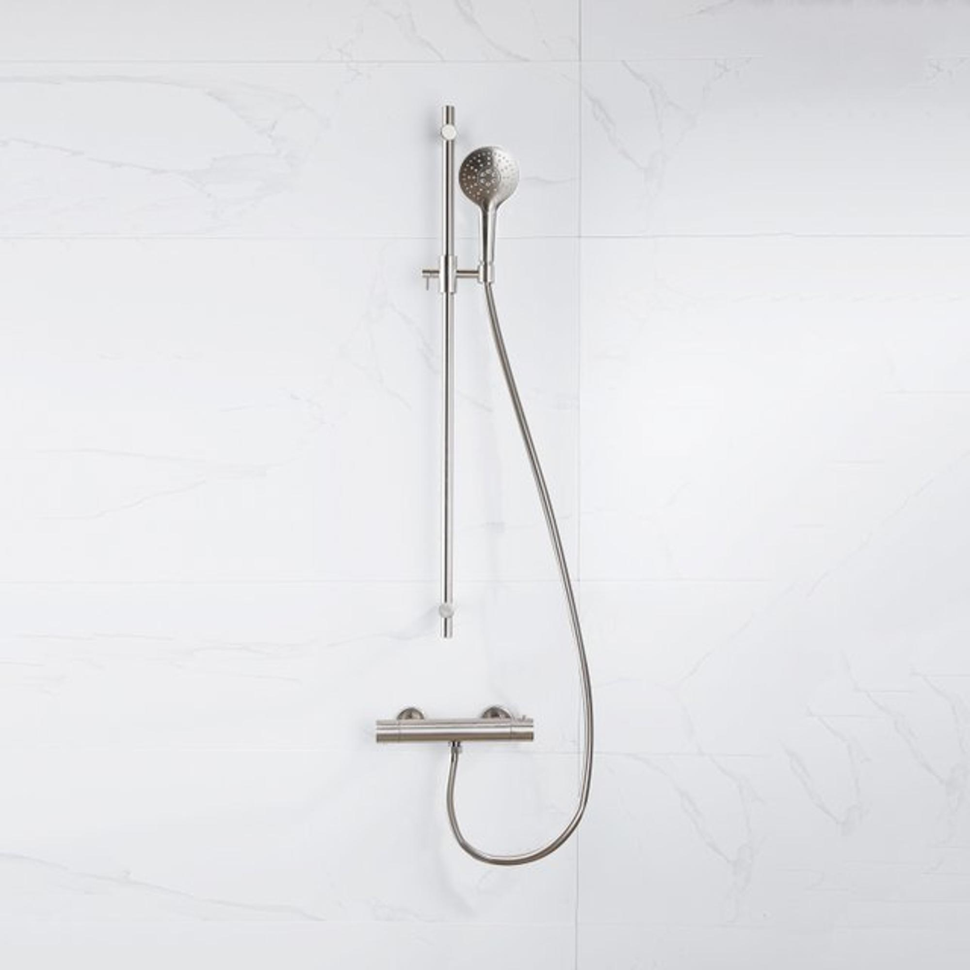 Acier inoxydable moderneAvec une finition en acier inoxydable brossé, ce set de douche Fortifura Calvi est un véritable accroche-regard ! La finition polyvalente en acier inoxydable se marie bien avec presque tous les styles d'intérieur. Grâce à son aspect artisanal, vous donnez immédiatement à la pièce une allure moderne et raffinée.