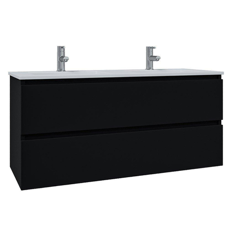 Saniclass Chaci Ensemble meuble de salle de bains - 120x46x57cm - lavabo en céramique blanc - 2 vasques - 2 trous de robinetterie - 2 tiroirs - miroir rectangulaire - noir mat