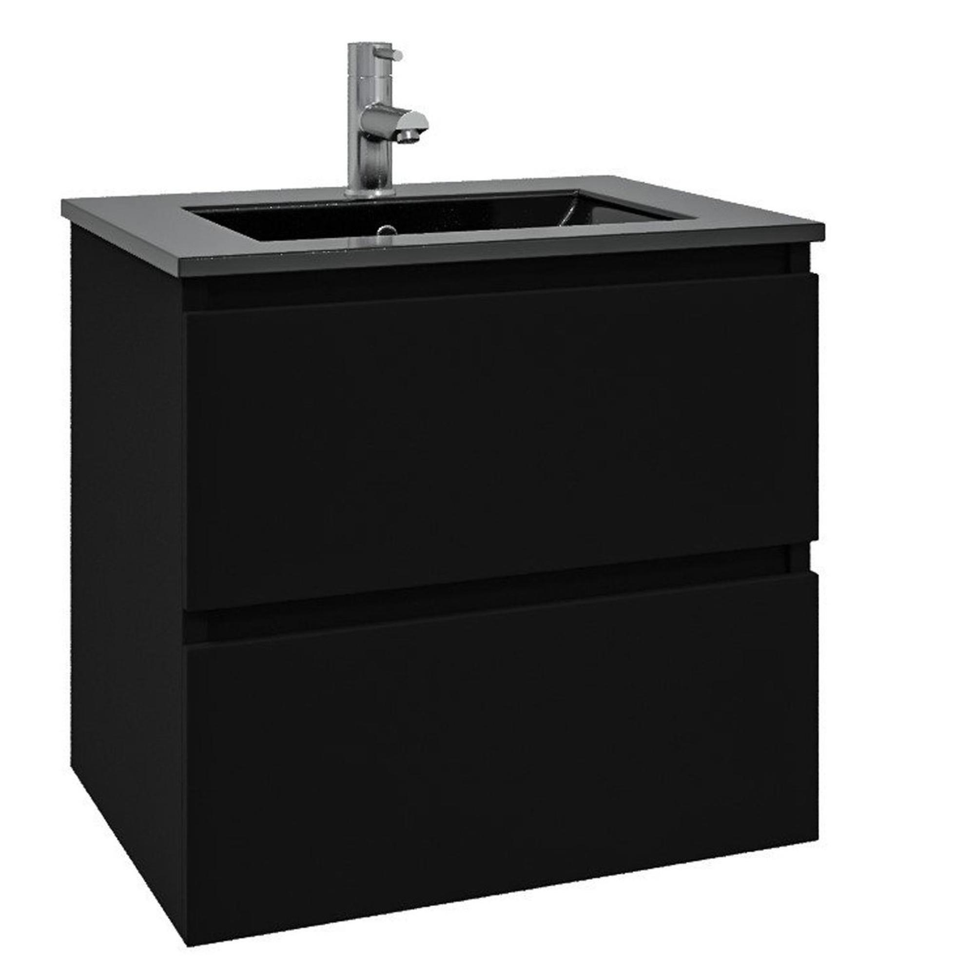 Saniclass Chaci Ensemble meuble de salle de bains - 60x46x57cm - lavabo céramique noir - 1 vasque - 1 trou de robinet - 2 tiroirs - miroir rectangulaire - noir mat