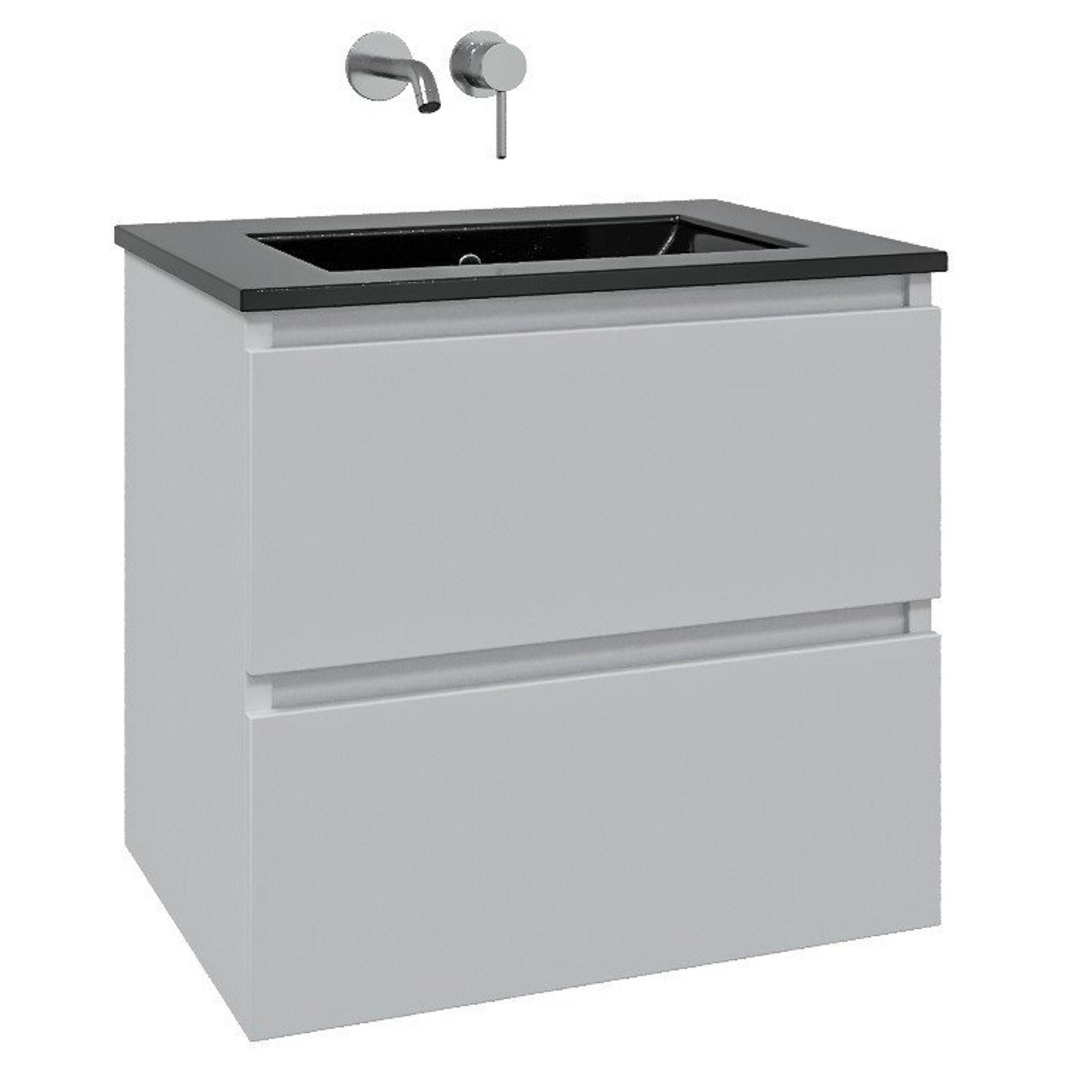 Saniclass Chaci Ensemble meuble de salle de bains - 60x46x55cm - lavabo céramique noir - 1 vasque - sans trou de robinet - 2 tiroirs - miroir rectangulaire - blanc mat