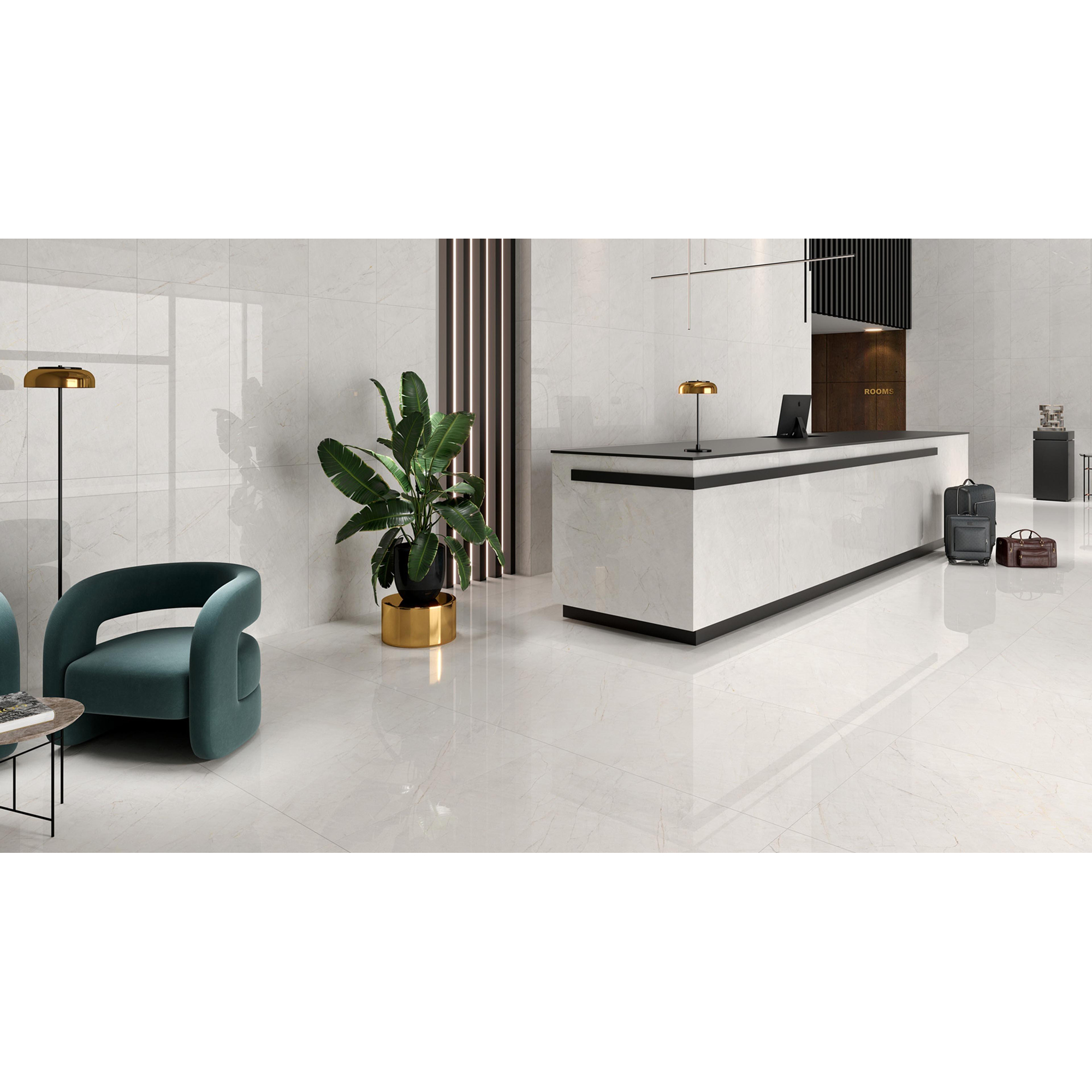Avec ce carrelage de sol élégant, vous apportez chez vous une base intemporelle qui s’intègre sans effort aussi bien dans les salles de bains modernes que classiques. Le format généreux, presque carré, crée une apparence calme et spacieuse, idéale si vous souhaitez réaliser un look de salle de bains d’hôtel épuré ou un espace bien-être serein. Grâce à la teinte blanche mate, le carrelage se marie à merveille avec presque toutes les couleurs de sanitaires et de meubles : du bois chaud au noir mat et au chrome. C’est un choix judicieux si vous recherchez un sol uniforme, facile d’entretien et malgré tout luxueux, par exemple dans la salle de bains, les toilettes, le hall ou même en continuité dans le séjour pour un ensemble harmonieux.