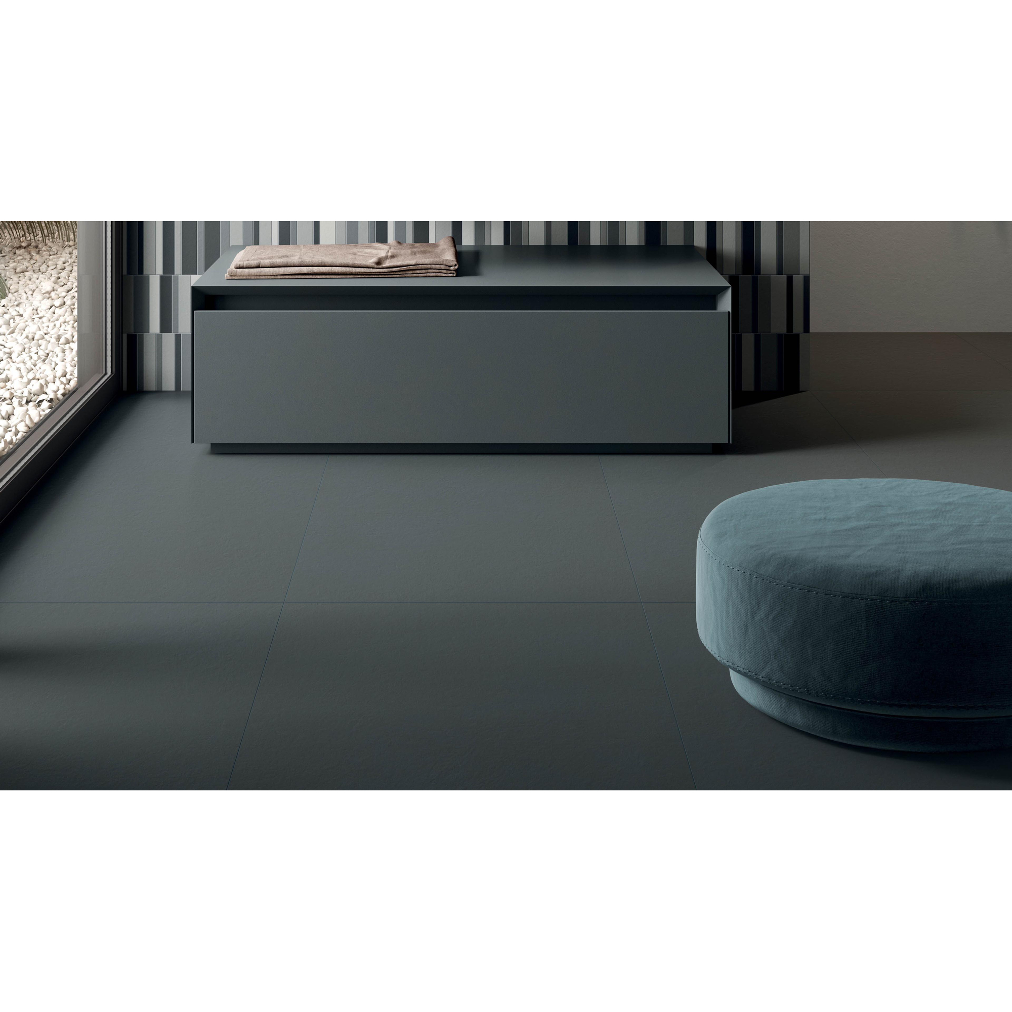 Grâce aux bords rectifiés, les carreaux sont dimensionnellement stables et coupés avec précision, ce qui permet de travailler avec des joints étroits et ainsi de créer un calepinage moderne. Cela n’est pas seulement esthétique dans les grands espaces de vie, mais également dans les salles de bains et toilettes où vous souhaitez conserver une tranquillité visuelle. Avec une épaisseur de 9 mm, le carreau s’aligne bien sur d’autres types de sols et se combine parfaitement avec un chauffage par le sol ; en effet, la céramique conduit bien la chaleur et assure une répartition confortable et homogène de celle-ci. Comme le carreau est applicable à la fois comme carreau de sol et comme carreau mural, vous pouvez prolonger une seule et même série dans toute la pièce pour un ensemble harmonieux, par exemple un sol continu avec un mur accentué dans la même couleur.