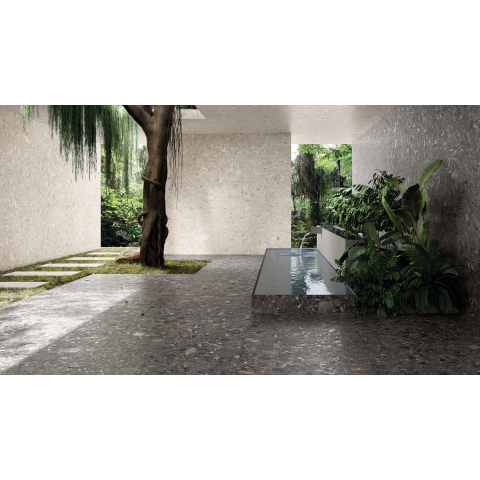 Aspect terrazzo et pierre élégant dans une teinte Avoiro intemporelle