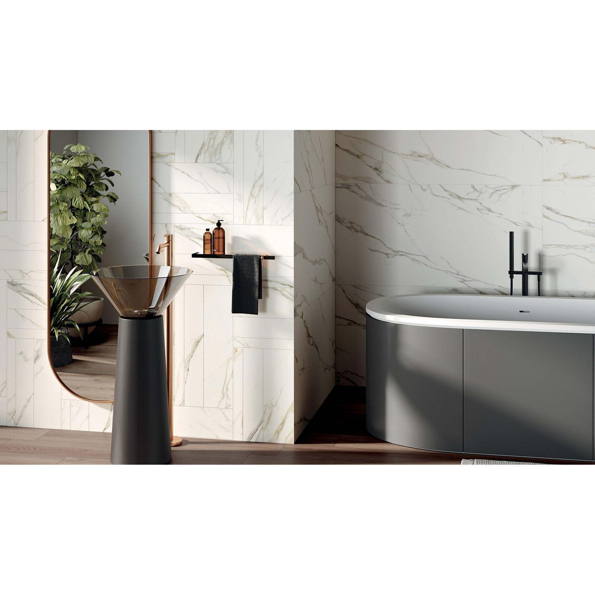 La polyvalence du carrelage Abk imoker Signoria le rend adapté à diverses applications. Que vous souhaitiez rénover une salle de bains, une cuisine ou un autre espace, ce carrelage s’intègre parfaitement dans chaque environnement. L’aspect marbre et la finition brillante Calacatta Michelangelo (blanc) ajoutent un charme intemporel, tandis que les grandes dimensions offrent un look moderne qui impressionne.