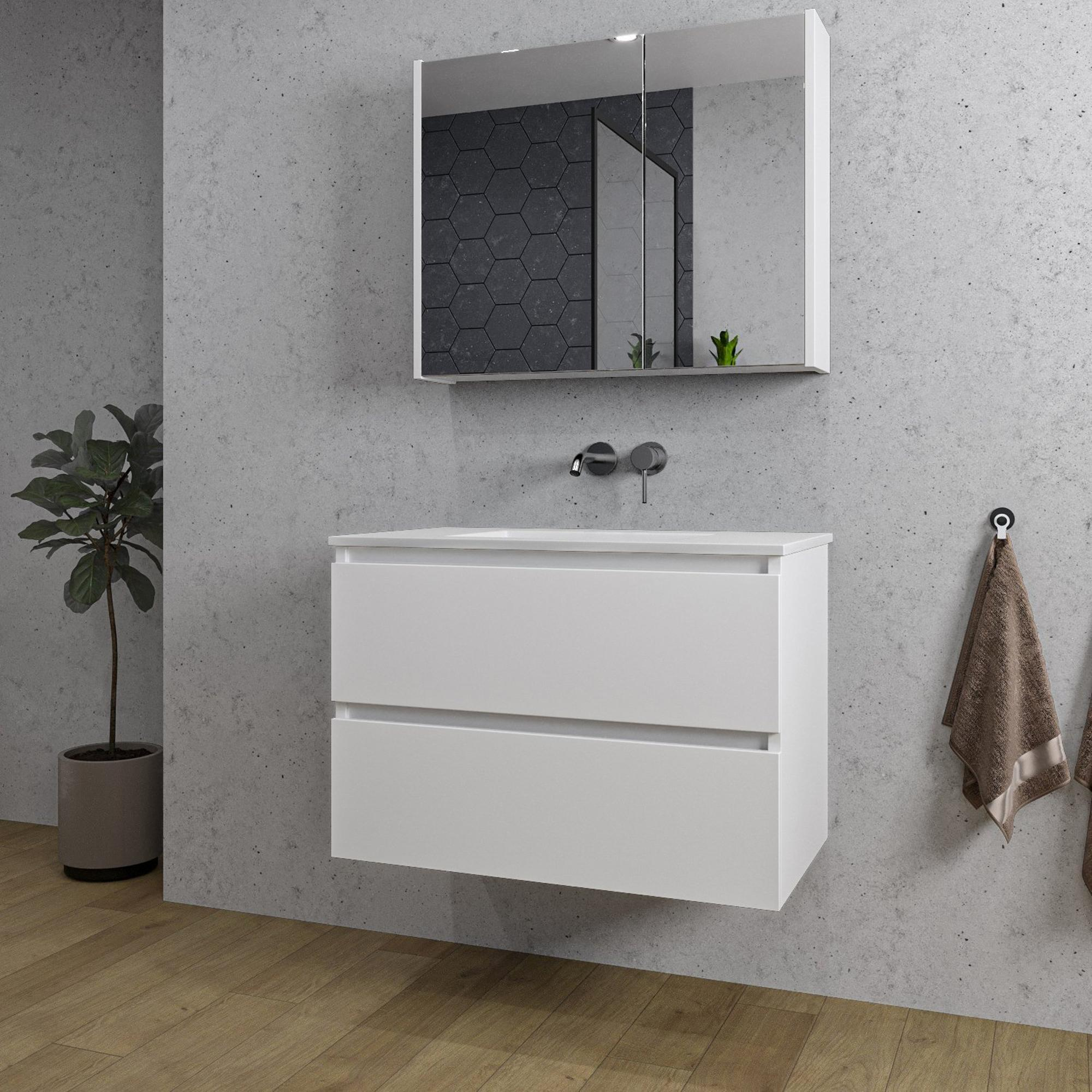 Saniclass Chaci Ensemble meuble de salle de bains - 80x46x55cm - vasque en céramique blanche - 1 lavabo - sans trous de robinet - 2 tiroirs - armoire de toilette - blanc mat