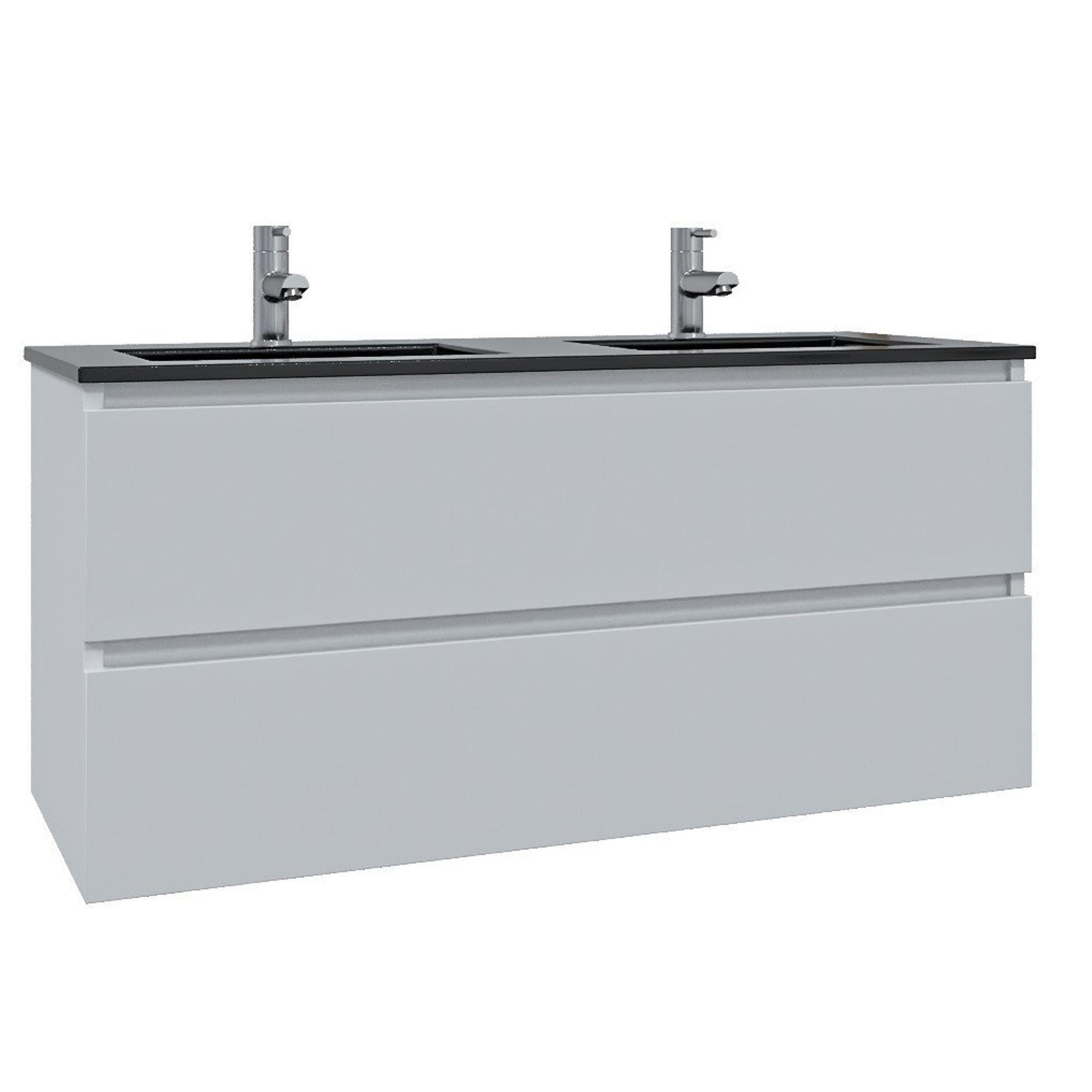 Saniclass Chaci Ensemble meuble de salle de bains - 120x46x57cm - lavabo céramique noir - 2 vasques - 2 trous de robinet - 2 tiroirs - armoire de toilette - blanc mat