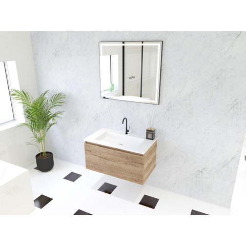 HR badmeubelen Matrix 3D Ensemble meuble de salle de bains 80cm 1 tiroir sans poignée avec profil de préhension en couleur chêne français avec lavabo thin 1 trou de robinet blanc mat