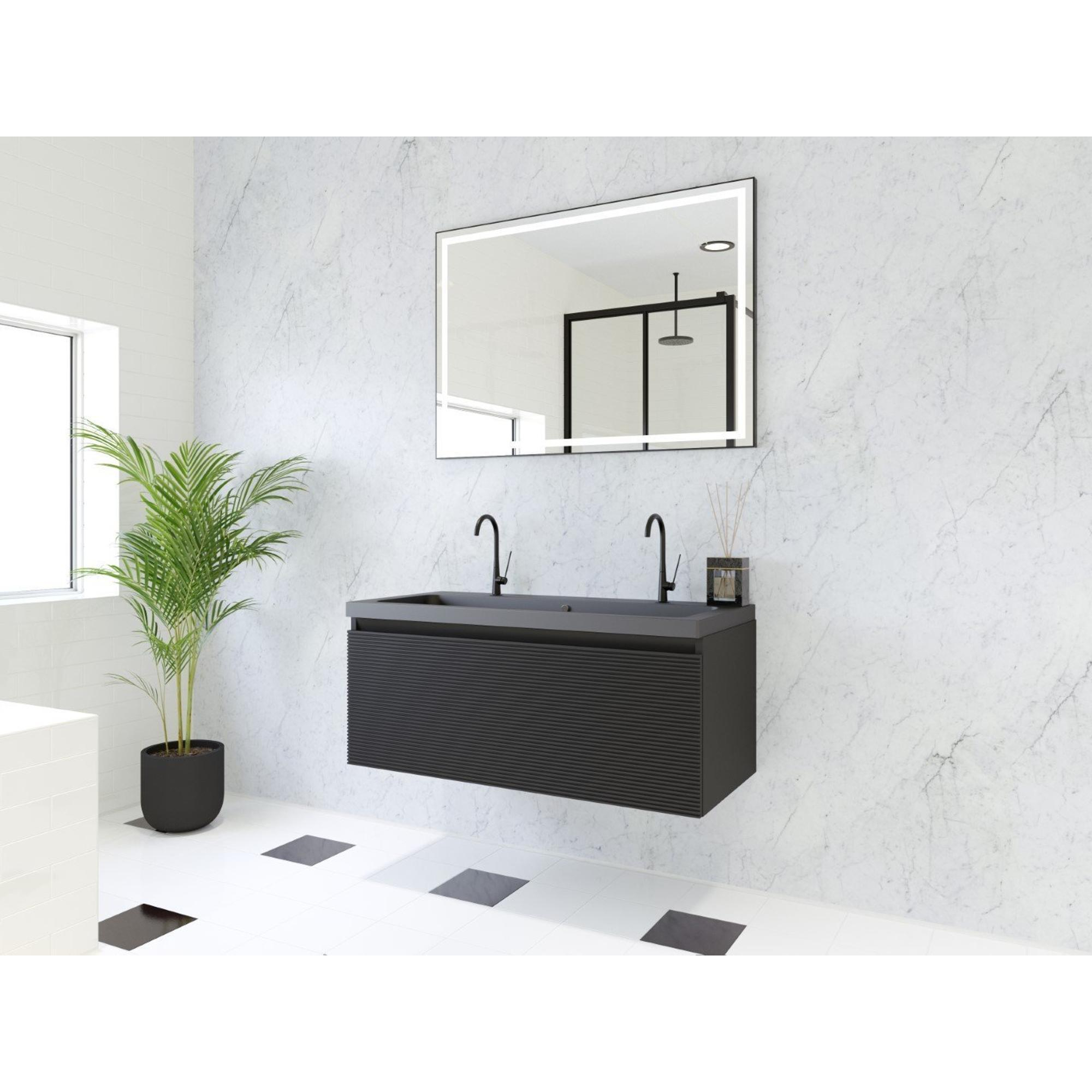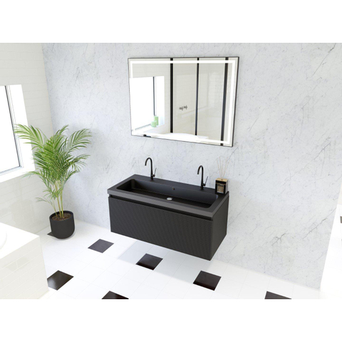 HR badmeubelen Matrix 3D ensemble meuble de salle de bains 100cm 1 tiroir sans poignée avec profil de prise en couleur Noir mat avec vasque djazz 2 trous de robinet noir mat