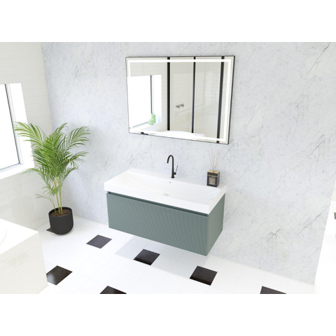 HR badmeubelen Matrix 3D Ensemble de meuble de salle de bains 100cm 1 tiroir sans poignée avec profil de poignée en couleur Petrol mat avec lavabo just 1 trou de robinet blanc