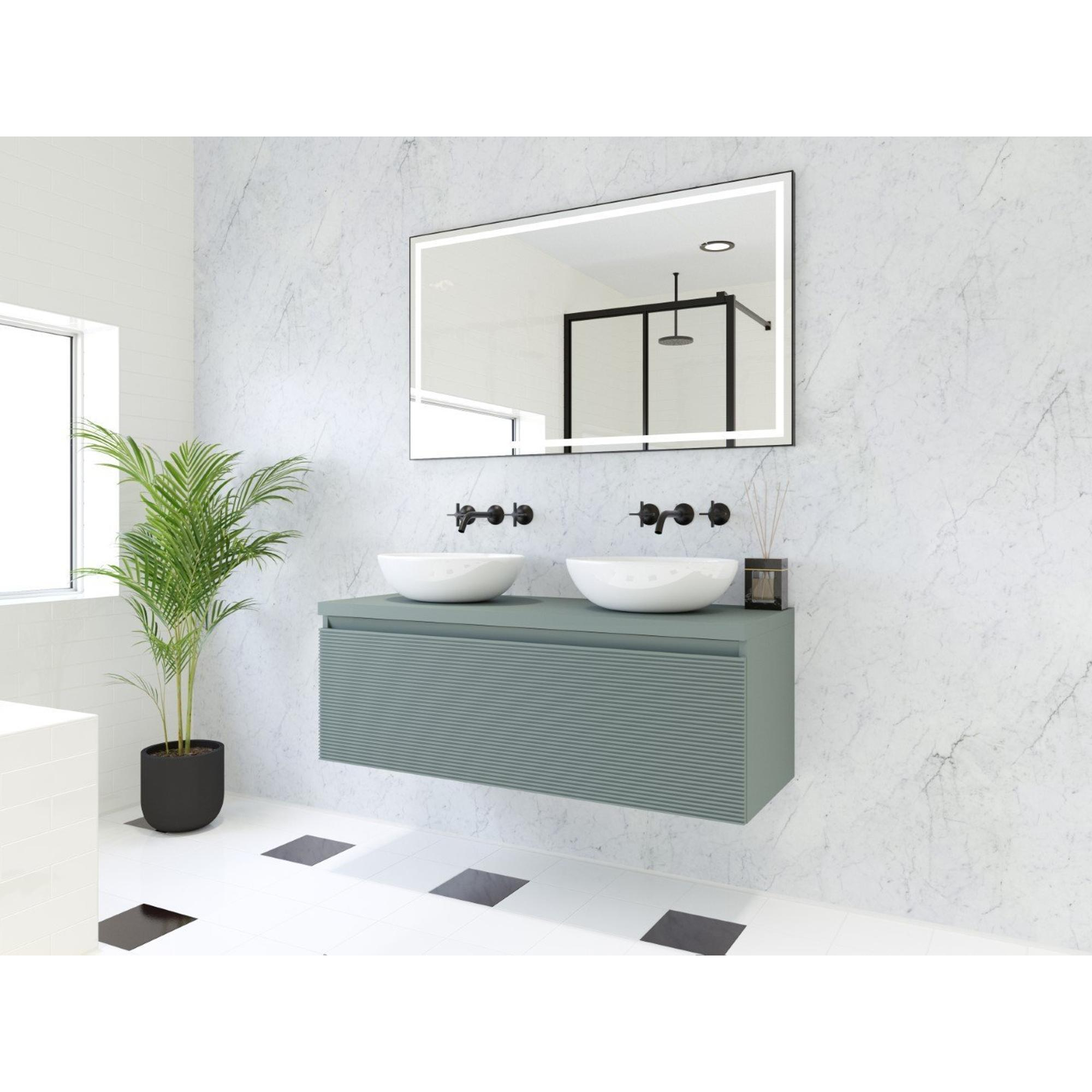HR badmeubelen Matrix 3D Ensemble meuble de salle de bains 120cm 1 tiroir sans poignée avec profil de poignée en couleur Petrol mat avec plan de dessus petrol mat