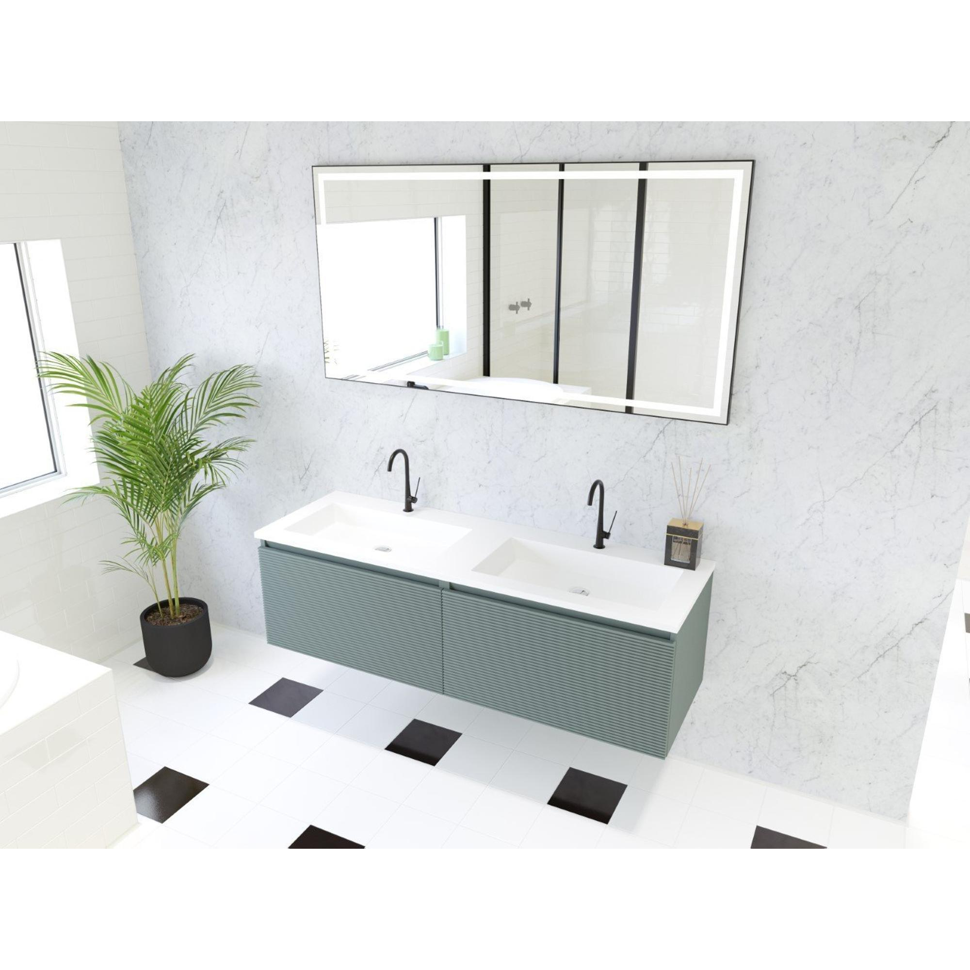 HR badmeubelen Matrix 3D Ensemble meuble de salle de bains 140cm 2 tiroirs sans poignées avec profil de prise en couleur Petrol mat avec lavabo thin 2 trous de robinet blanc mat