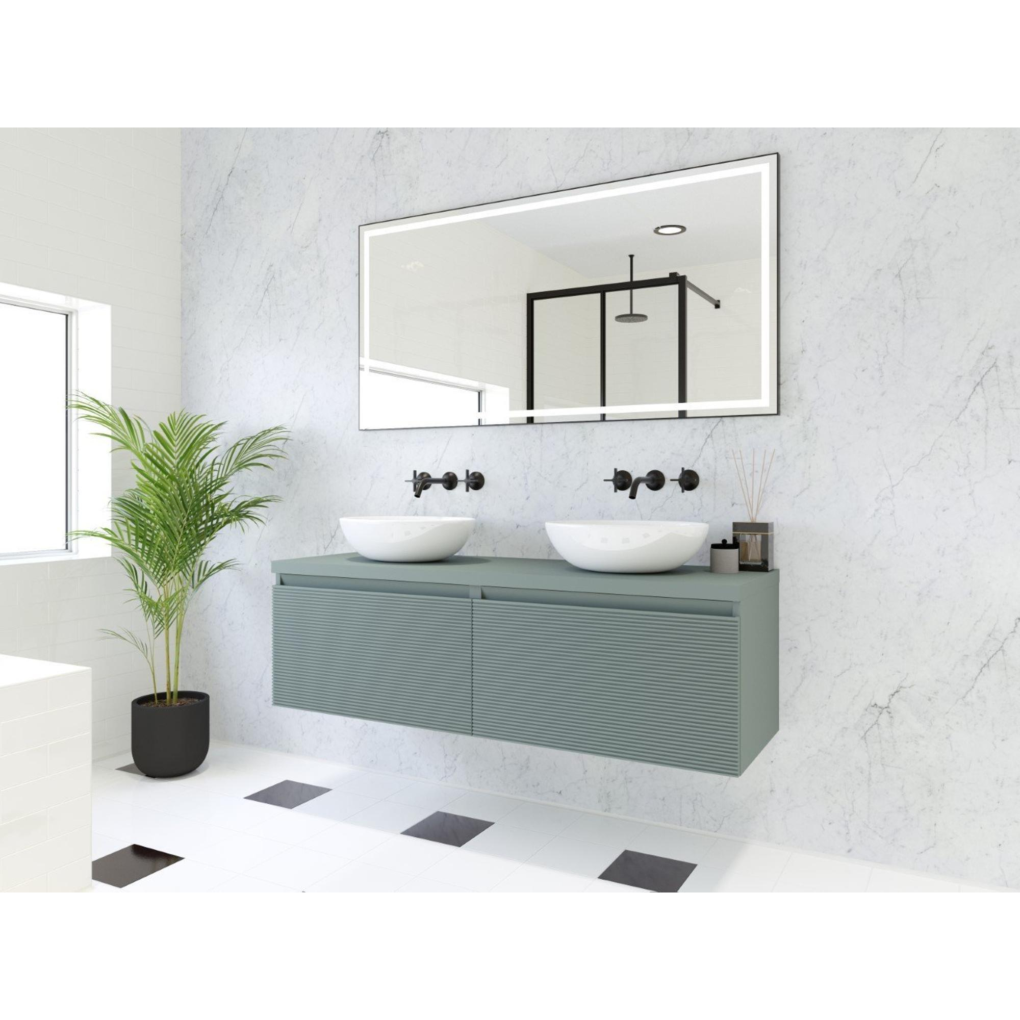 HR badmeubelen Matrix 3D Ensemble meuble de salle de bains 140cm 2 tiroirs sans poignées avec profil de prise de couleur Petrol mat avec plan de toilette petrol mat