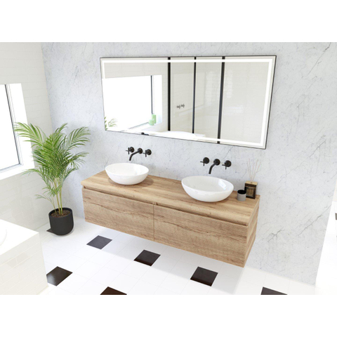 Cette vaste ensemble meuble de salle de bains est idéale si vous êtes à la recherche d'un meuble épuré et moderne avec une apparence chaleureuse et conviviale. Avec une largeur de 160 cm et deux tiroirs spacieux, vous disposez de plus qu'assez d'espace de rangement pour un foyer occupé, un couple partageant la salle de bains ou tout simplement si vous aimez garder tout soigneusement hors de vue. La combinaison de la façade sans poignées et du profil de prise continu dans la même teinte bois crée un aspect calme et luxueux qui s'intègre sans effort dans les salles de bains modernes, scandinaves ou naturelles. Grâce au plateau supérieur assorti dans le même décor bois, il en résulte un bel ensemble continu sur lequel vous pouvez choisir vous-même un ou deux lavabos à poser et robinets, afin d'adapter précisément le meuble à votre style et à votre utilisation.
