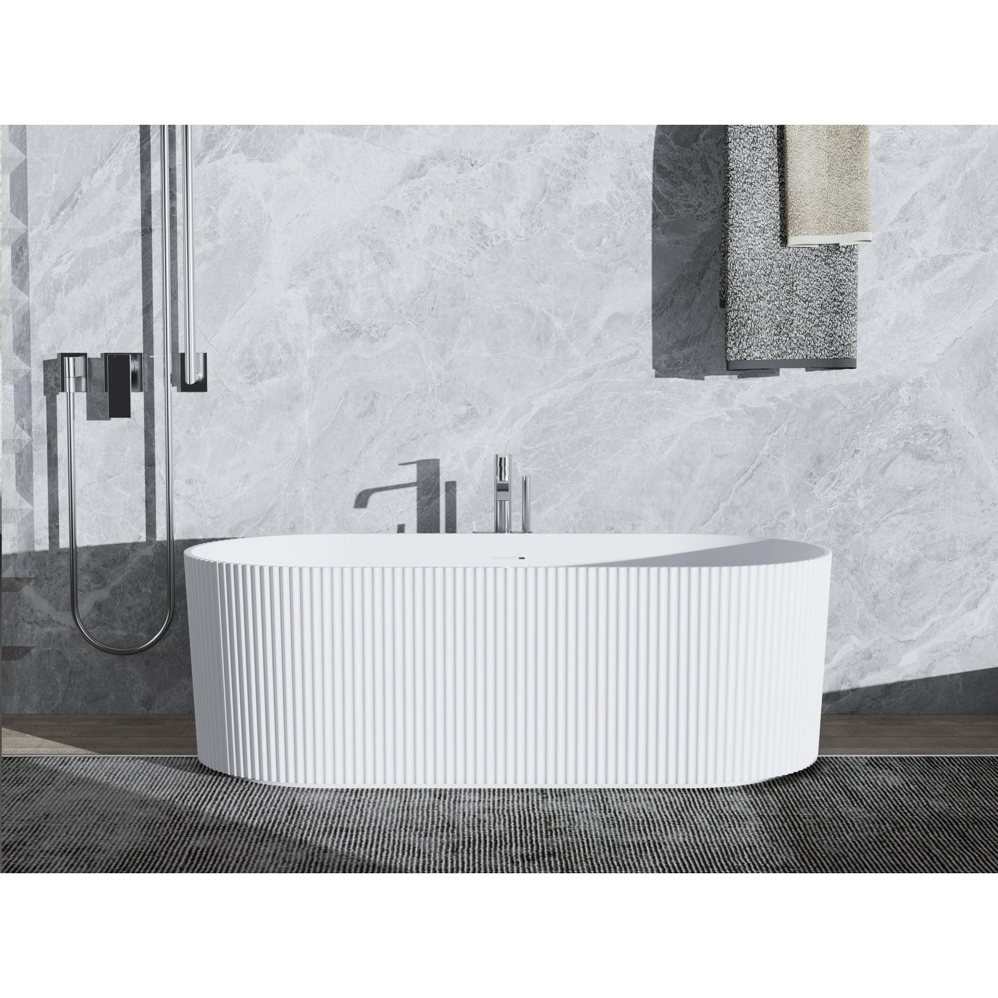 Les lignes verticales nervurées donnent à cette baignoire îlot une texture subtile mais distinctive qui confère à la baignoire une apparence unique. La finition blanche brillante offre un look frais et luxueux qui s'harmonise sans effort avec différents styles de salle de bains. Que vous optiez pour un aménagement moderne et épuré ou une ambiance chaleureuse et naturelle, cette baignoire constitue un élément de style remarquable. La forme ovale crée des lignes douces qui dégagent une sensation de calme et invitent à la détente. Ainsi, vous ajoutez non seulement de la fonctionnalité, mais aussi une touche d'élégance à votre salle de bains.
