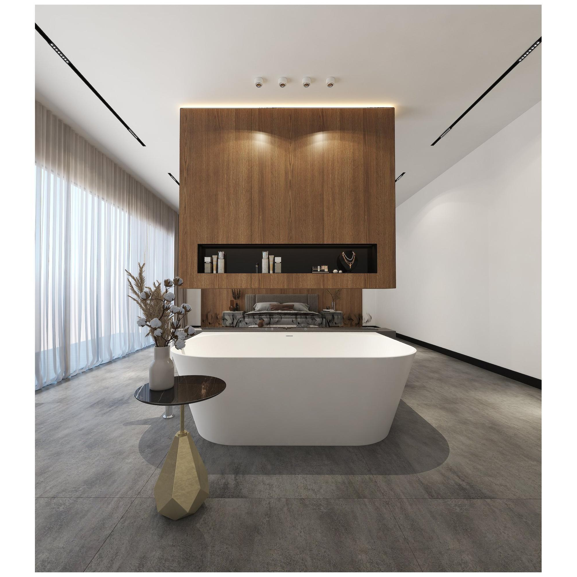 Cette baignoire est fabriquée en solid surface, un matériau de haute qualité reconnu pour sa durabilité et sa facilité d'entretien. Le solid surface est chaud et agréable au toucher, ce qui rend le bain encore plus plaisant. De plus, le matériau est résistant aux rayures et facile à nettoyer, ce qui permet à la baignoire de conserver son aspect neuf pendant de nombreuses années. Grâce à la finition mate blanche, la baignoire présente une apparence douce et naturelle qui s'harmonise bien avec différents styles de salle de bains. Cela en fait un investissement durable qui est non seulement fonctionnel mais aussi esthétiquement attrayant.