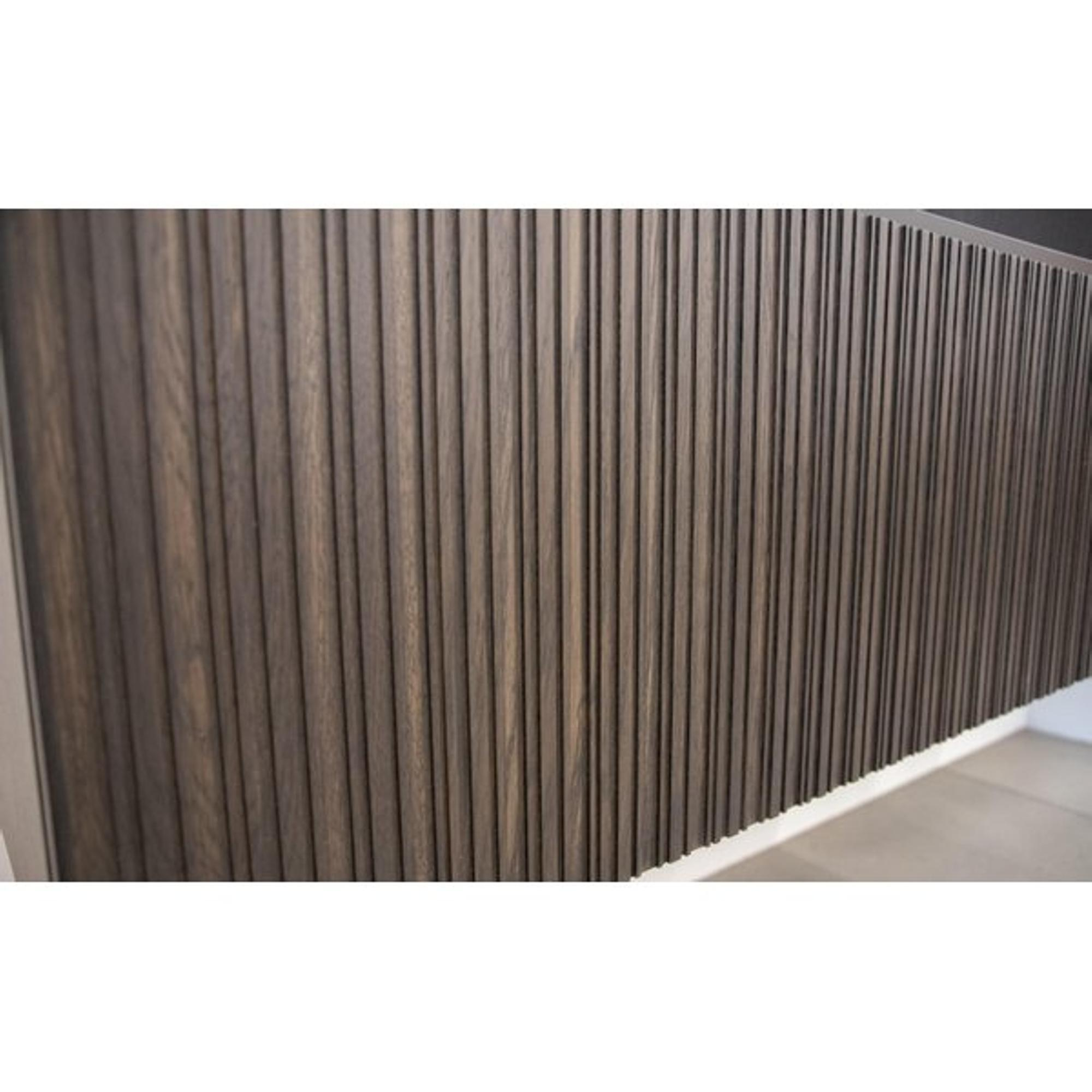 Ce meuble est conçu avec un aspect contemporain qui s'intègre parfaitement dans la salle de bains moderne. Le design minimaliste aux lignes épurées et le contraste entre le bois de chêne foncé et la vasque en céramique blanche créent une atmosphère fraîche et raffinée. Ce meuble est un véritable point focal qui donne à votre salle de bains une apparence tendance et luxueuse sans dominer. Ainsi, vous créez un espace à la fois élégant et accueillant.