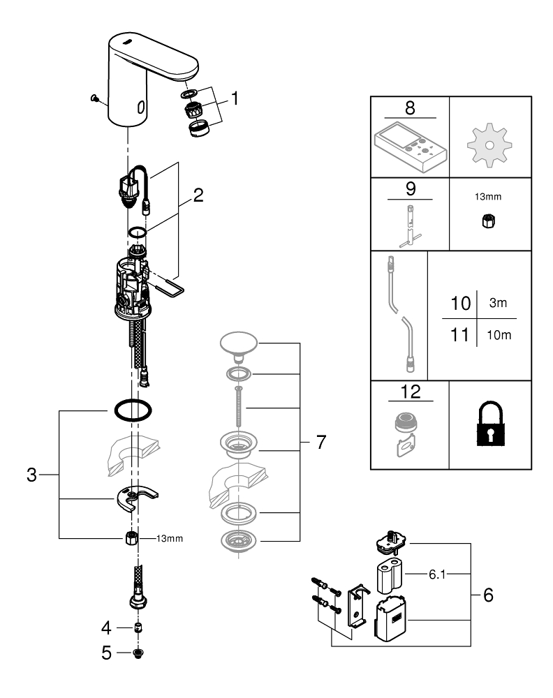 GROHE Eurosmart cosmopolitan e robinet de lavabo taille M infrarouge pile chromé