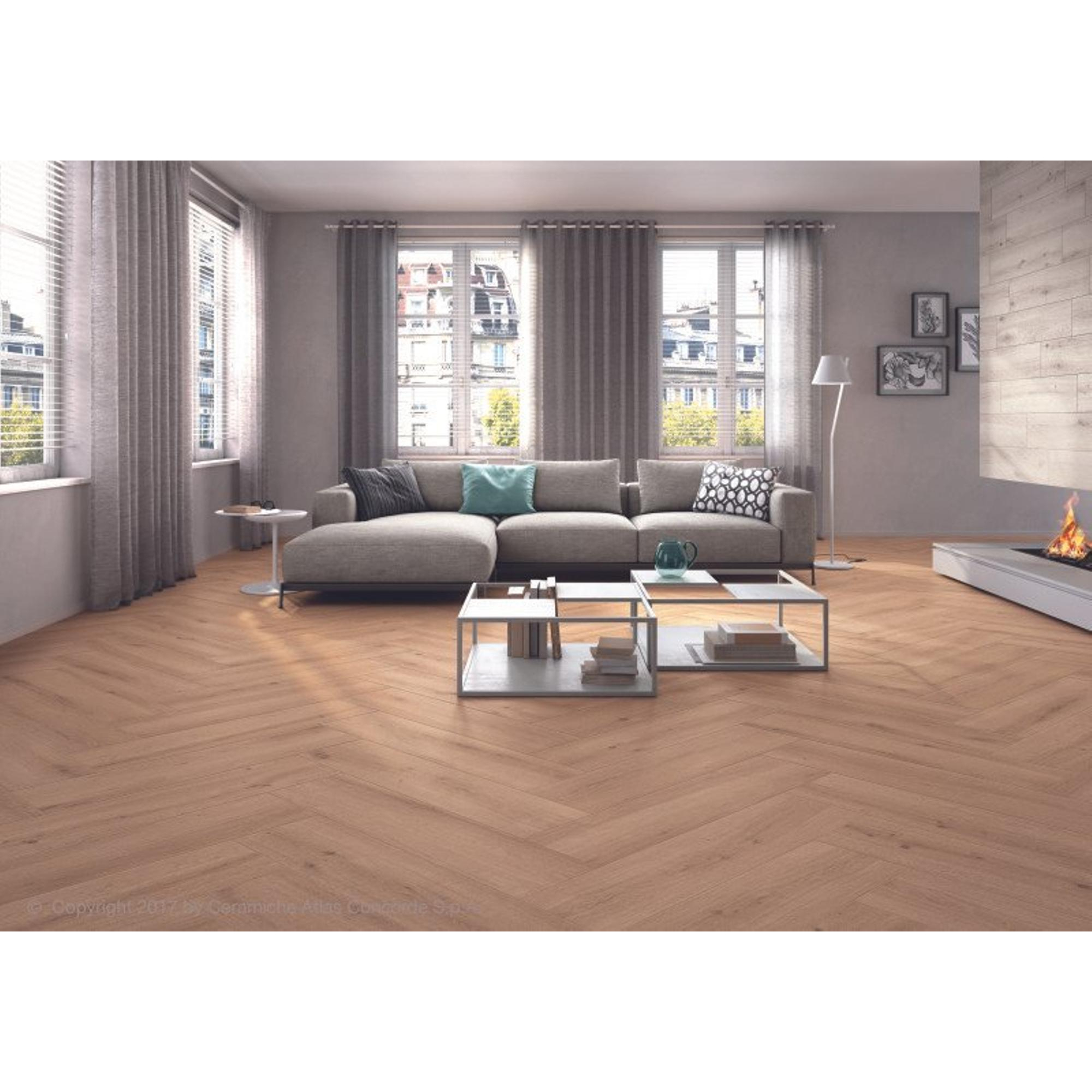 Le carrelage Atlas Concorde Solution en imitation bois Natural peut être décrit comme magnifique et esthétiquement attrayant. La structure veinée du bois naturel et les tons de couleur chauds confèrent à chaque espace une atmosphère accueillante. Qu’il s’agisse d’une salle de bains, d’une cuisine ou d’un séjour, ce carrelage ajoute immédiatement une touche d’élégance à chaque environnement.