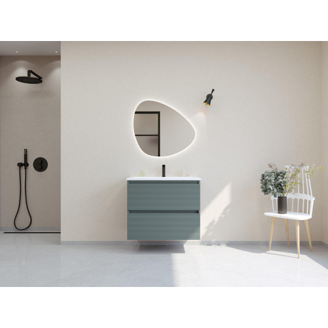 HR badmeubelen Infinity XXL 3D Ensemble meuble de salle de bains - 80 cm - 1 lavabo en céramique gala blanc - 1 trou de robinet - 2 tiroirs - mat pétrole