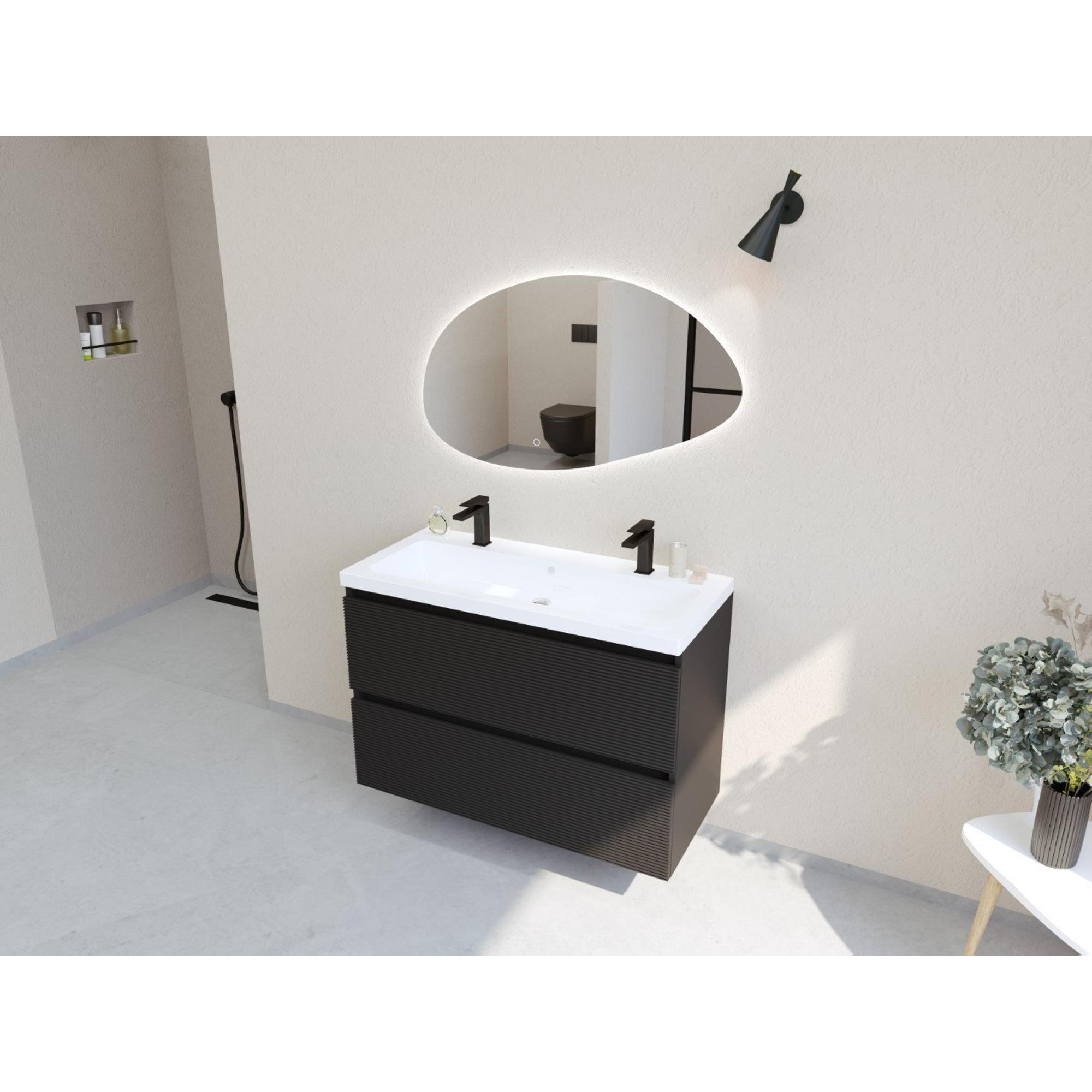 HR badmeubelen Infinity XXL 3D Ensemble meuble de salle de bains - 100 cm - 1 lavabo en céramique djazz blanc - 2 trous de robinet - 2 tiroirs - noir mat