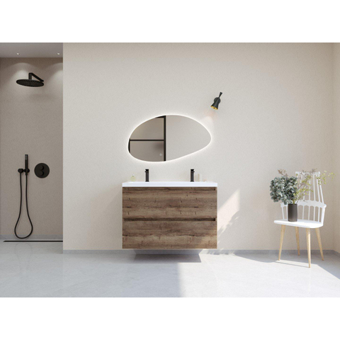 HR badmeubelen Infinity XXL 3D Ensemble meuble de salle de bains - 100 cm - 1 lavabo en céramique djazz blanc - 2 trous de robinet - 2 tiroirs - charleston