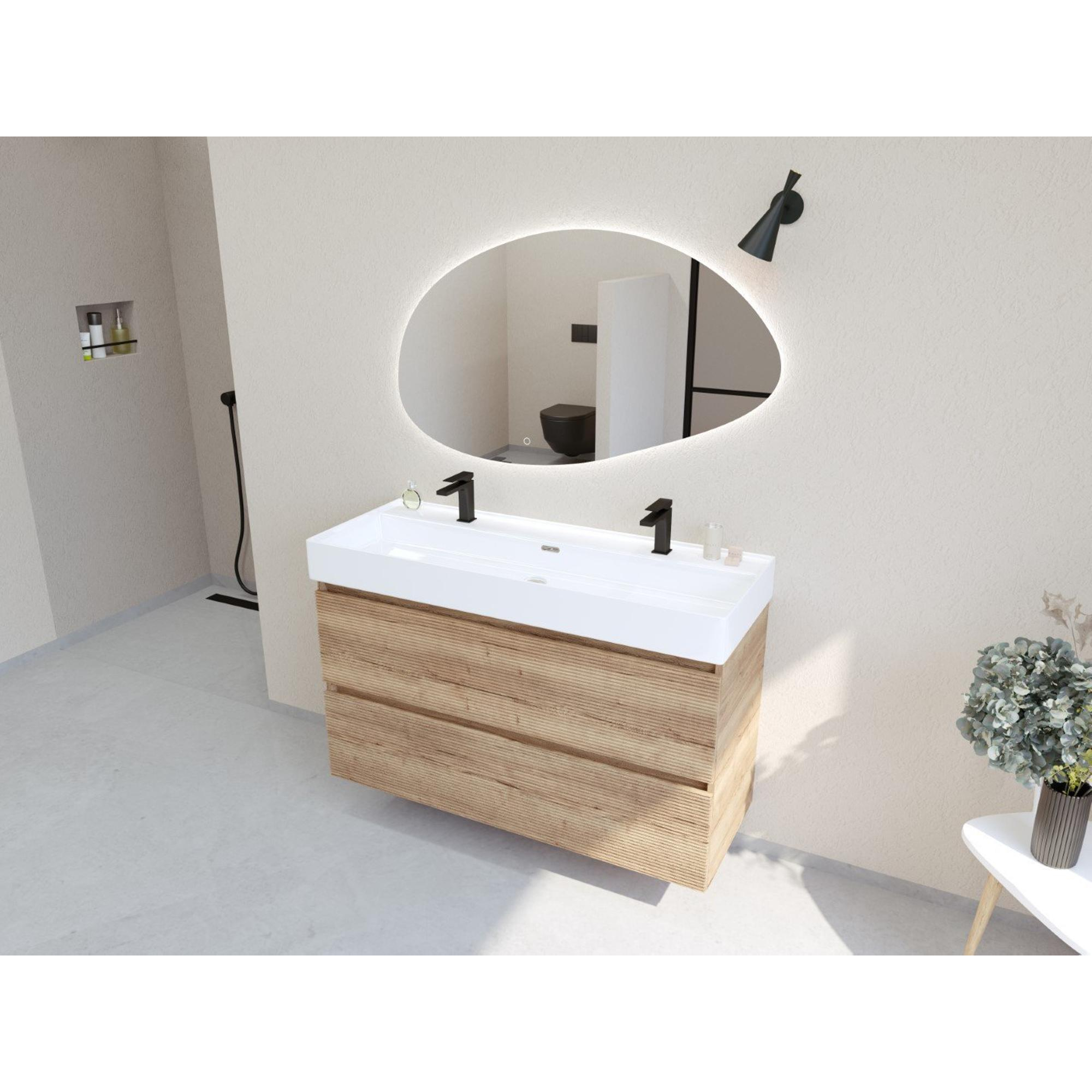 HR badmeubelen Infinity XXL 3D Ensemble meuble de salle de bains - 120 cm - 1 lavabo en céramique kube blanc - 2 trous de robinet - 2 tiroirs - chêne français