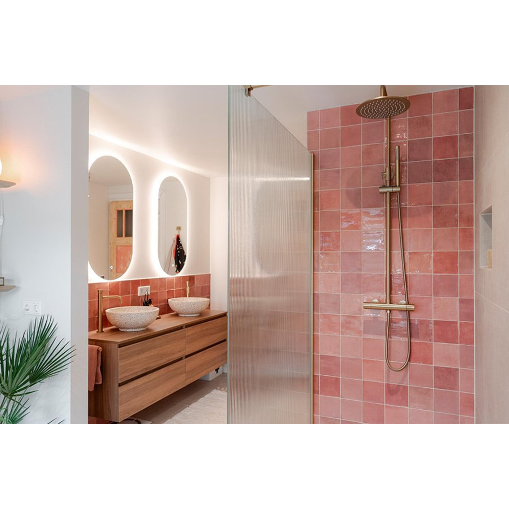 Avec ses matériaux et sa finition de haute qualité, la douche à l'italienne Fortifura Galeria dégage un luxe pur. Le verre texturé offre une apparence exclusive tout en garantissant l'intimité pendant la douche. Les détails en laiton brossé ajoutent une touche d'élégance à l'ensemble, créant une atmosphère de spa luxueuse dans votre salle de bain.