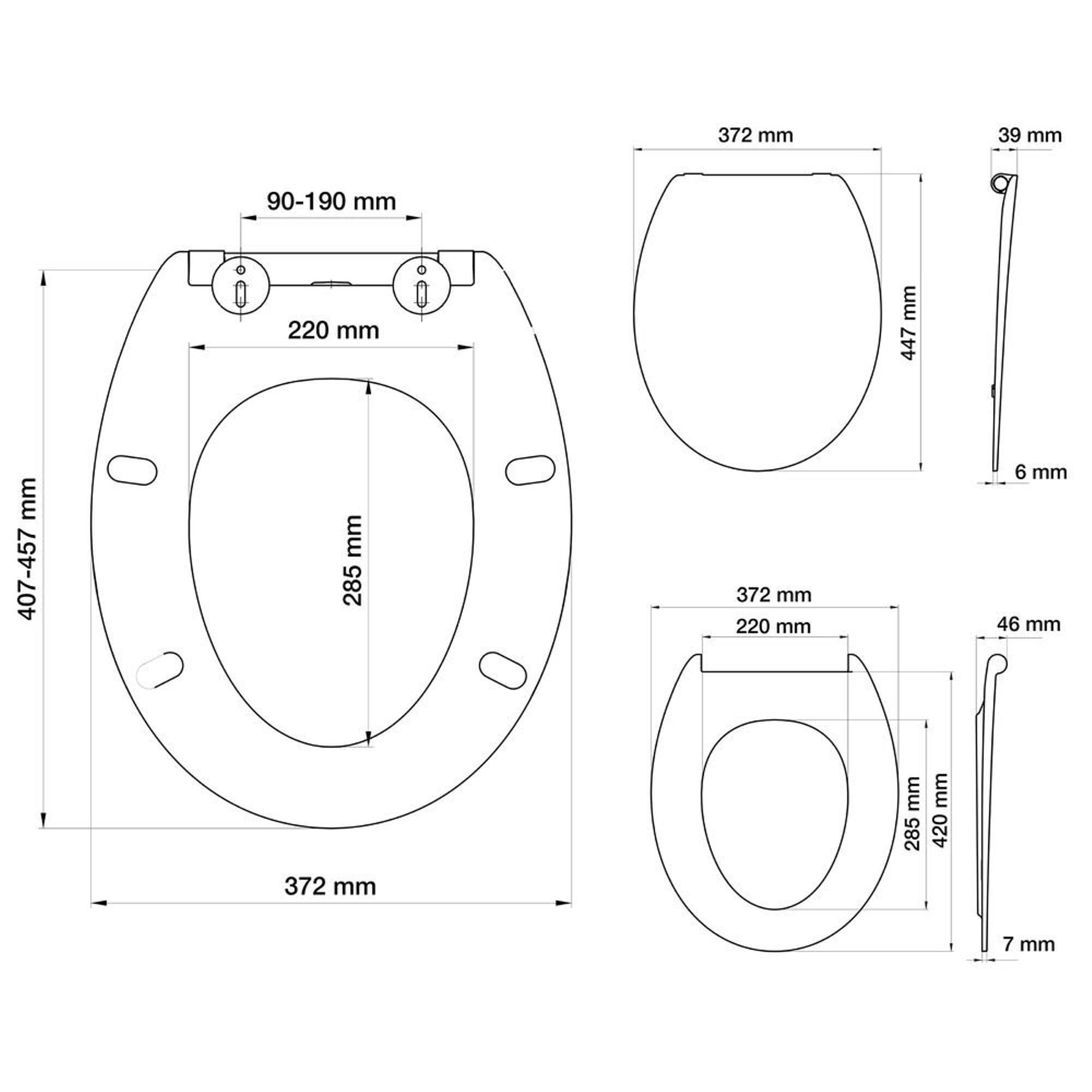 - Forme confortable avec des dimensions d’environ 447 x 372 x 46 mm adaptées à de nombreux WC courants