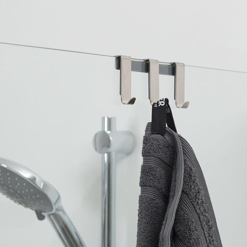 Ce porte-crochets se suspend facilement par-dessus une porte de douche en verre, une paroi de douche ou un panneau en verre de 6 à 8 mm d’épaisseur. Vous n’avez besoin d’aucun outil, cheville ou vis, ce qui permet de garder votre carrelage et votre verre intacts. C’est non seulement appréciable lorsque vous êtes locataire, mais aussi si vous souhaitez garder la liberté de modifier plus tard l’aménagement de votre salle de bains. Le crochet peut être placé aussi bien à l’intérieur qu’à l’extérieur de la douche, vous permettant de choisir si votre serviette est à portée de main dans la cabine ou reste bien au sec à l’extérieur de la zone humide.