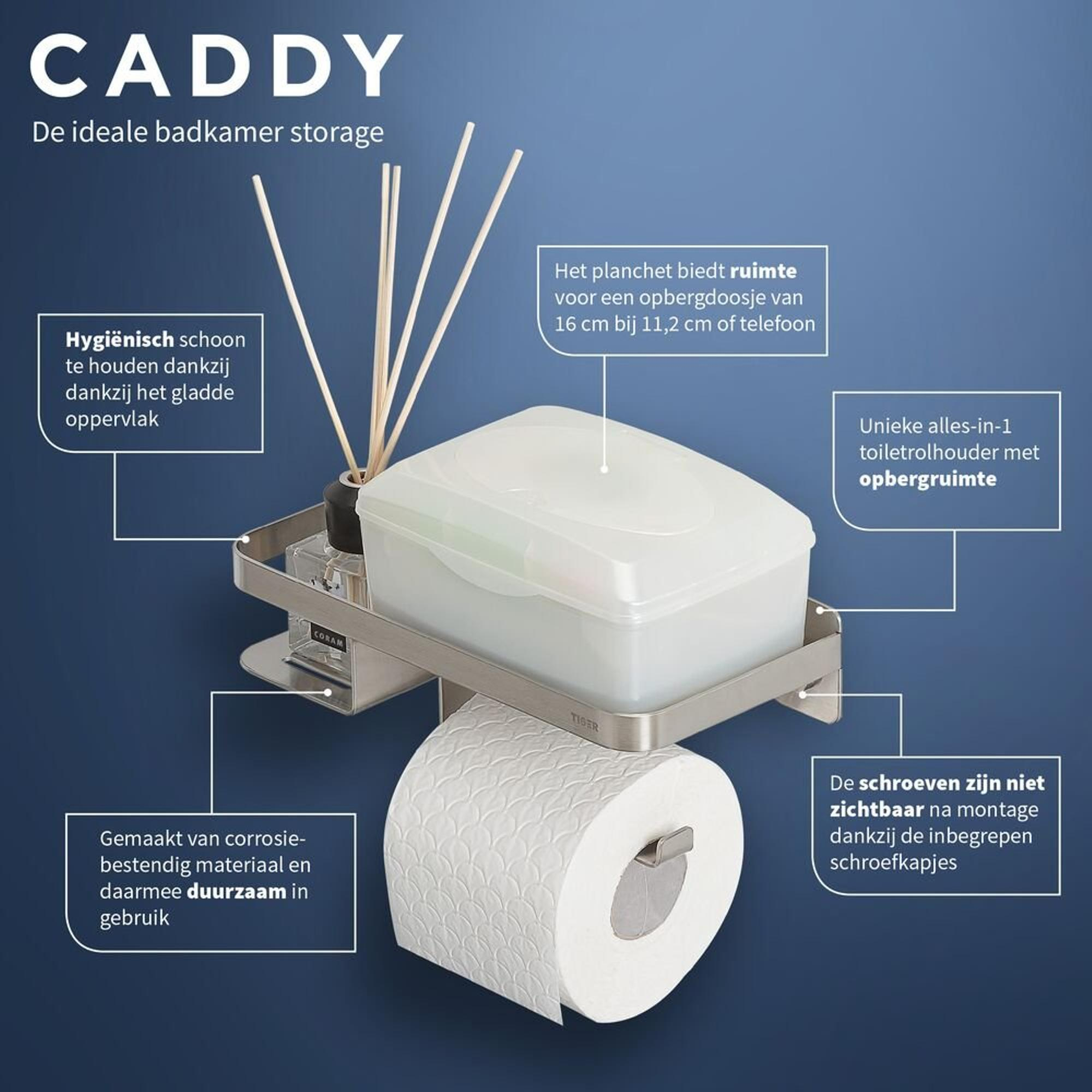 Tiger Caddy Porte-rouleau de papier toilette avec tablette Acier inoxydable brossé