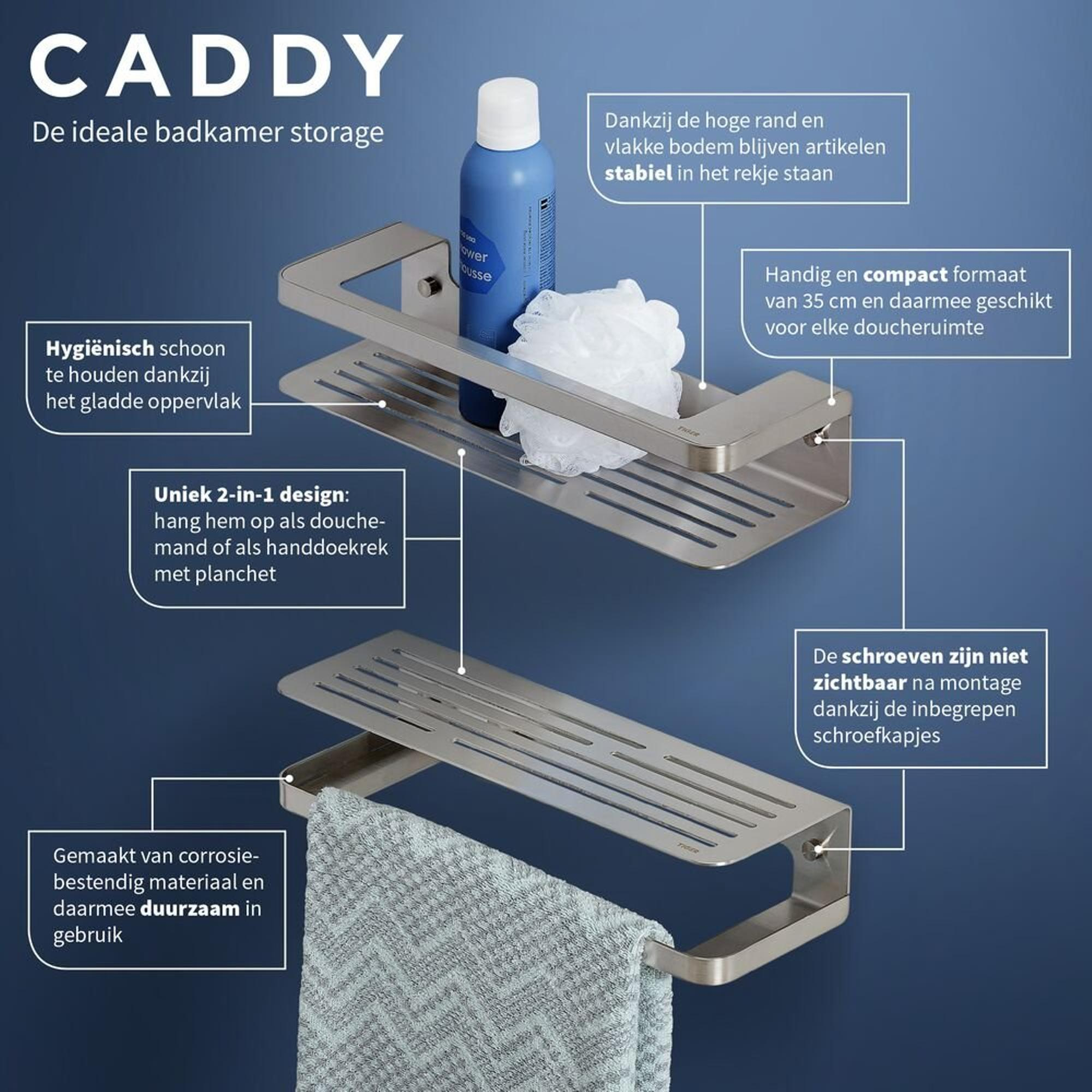 Tiger Caddy Panier de douche ou porte-serviettes 35 cm Inox brossé
