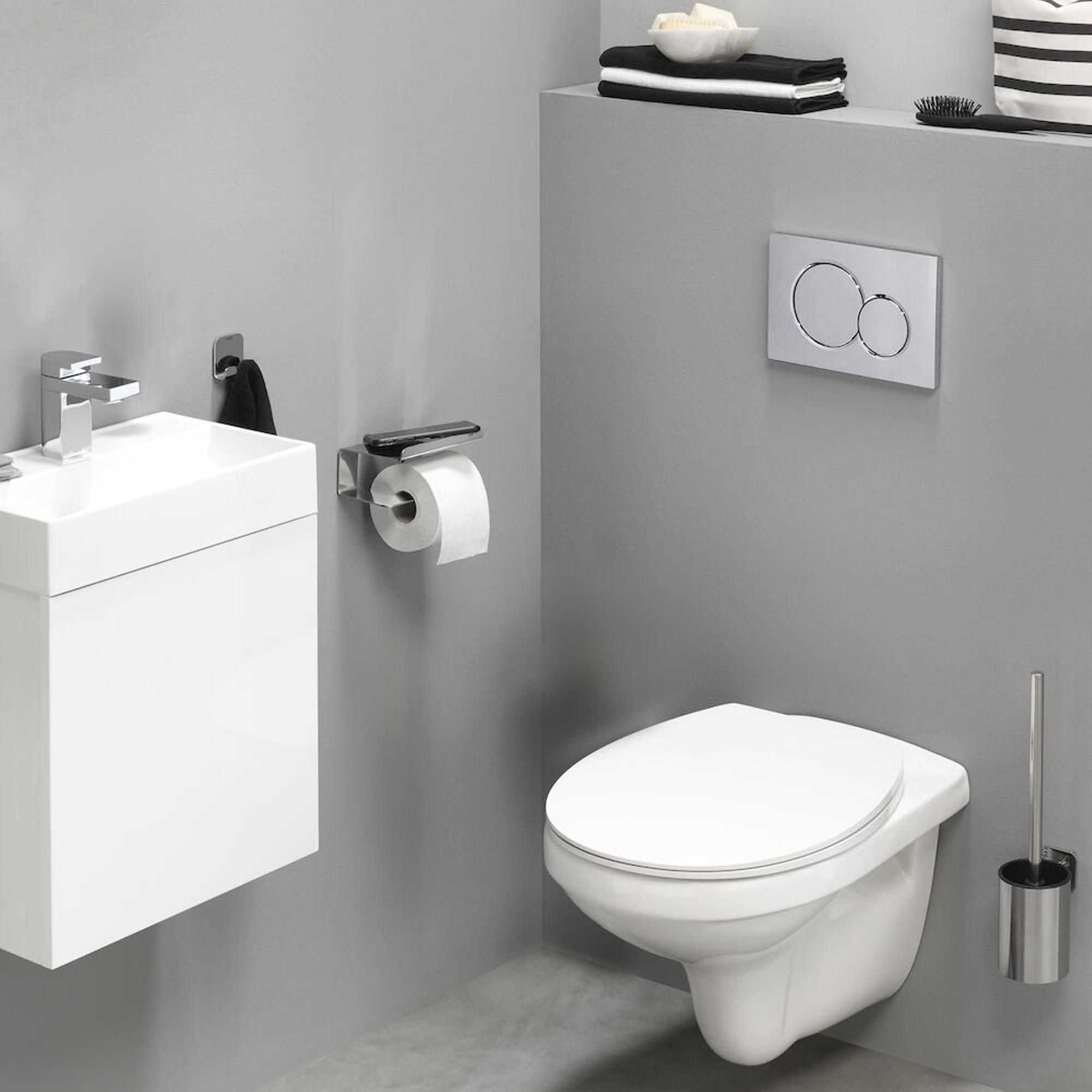 - Ensemble complet avec porte-rouleau de papier toilette, tablette, porte-brosse de toilette et patère pour des toilettes immédiatement terminées