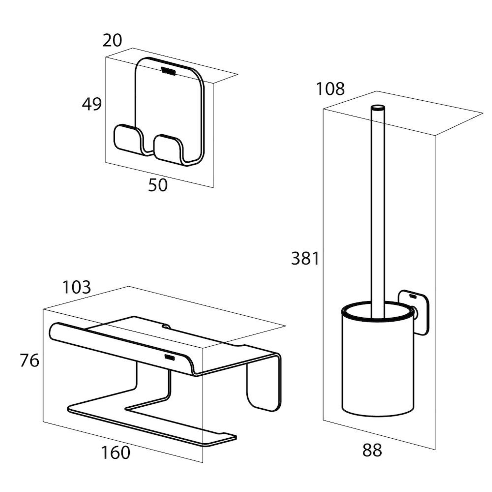 Avec cet ensemble bien pensé, vous aménagez vos toilettes ou votre petite salle de bains en une seule fois de manière élégante, pratique et soignée. Optez pour la facilité du montage autoadhésif et pour l’aspect durable de l’inox poli. Complétez la salle de bains de vos rêves avec ce produit élégant et découvrez vous-même sa qualité.