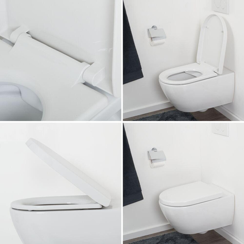 La forme en D n'est pas seulement un choix tendance, mais surtout très fonctionnel. Cette forme s'adapte parfaitement à de nombreux WC suspendus modernes et crée une ligne épurée le long du bord de la céramique. Cela donne immédiatement un aspect plus calme et plus luxueux, surtout dans une salle de bains ou un espace WC contemporain avec des formes droites et des détails minimalistes. La finition blanche brillante convient à pratiquement toute cuvette de WC blanche standard, ce qui vous évite de douter de l'harmonie des couleurs. Grâce à sa conception étudiée, l'abattant est confortable et offre une sensation de stabilité, même en cas d'utilisation intensive au quotidien. Vous combinez ainsi une apparence moderne avec la sensation familière d'un abattant de WC solide et bien ajusté.