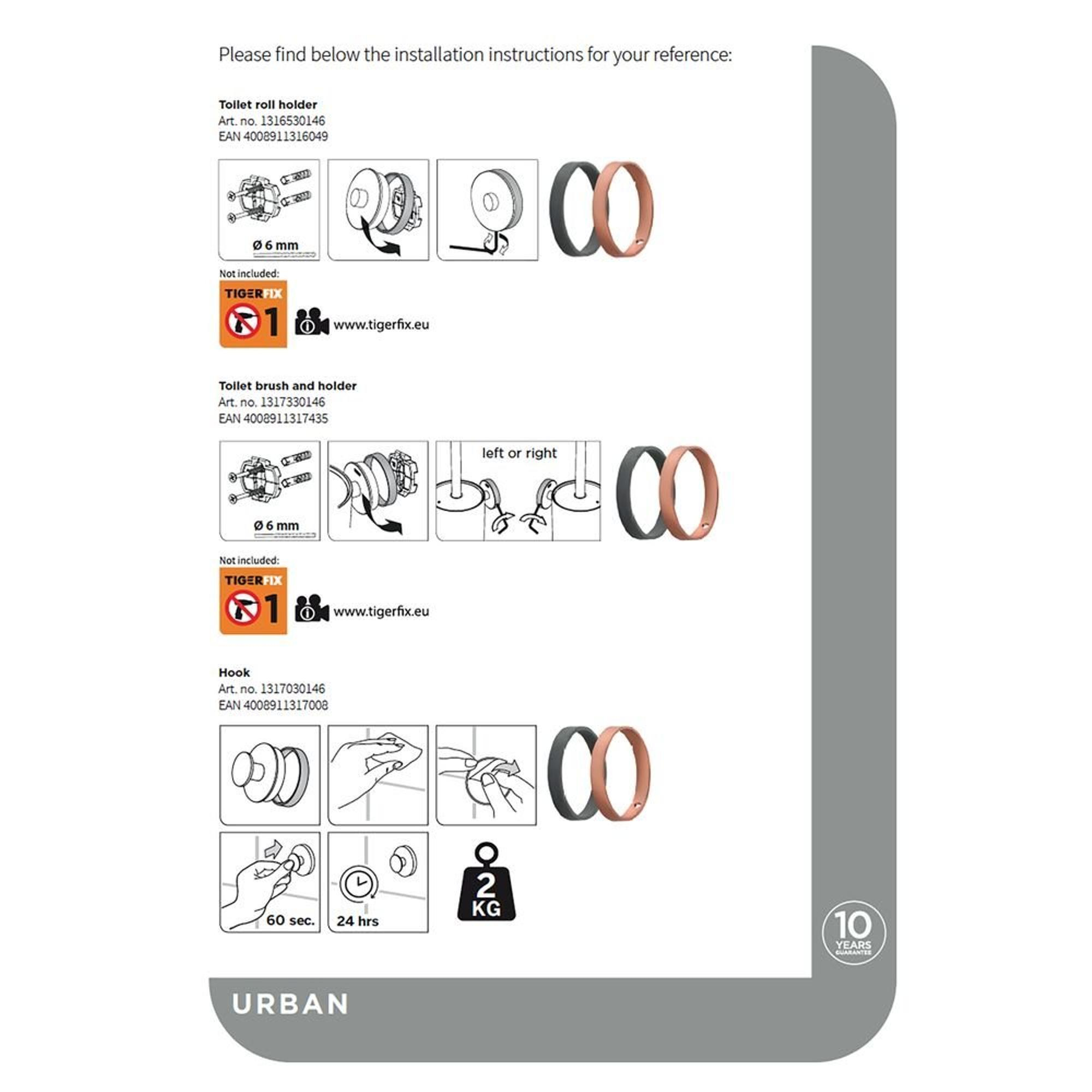 Tiger Urban Set d’accessoires de toilettes Brosse de toilettes avec support Porte-rouleau de toilettes sans couvercle Patère Blanc
