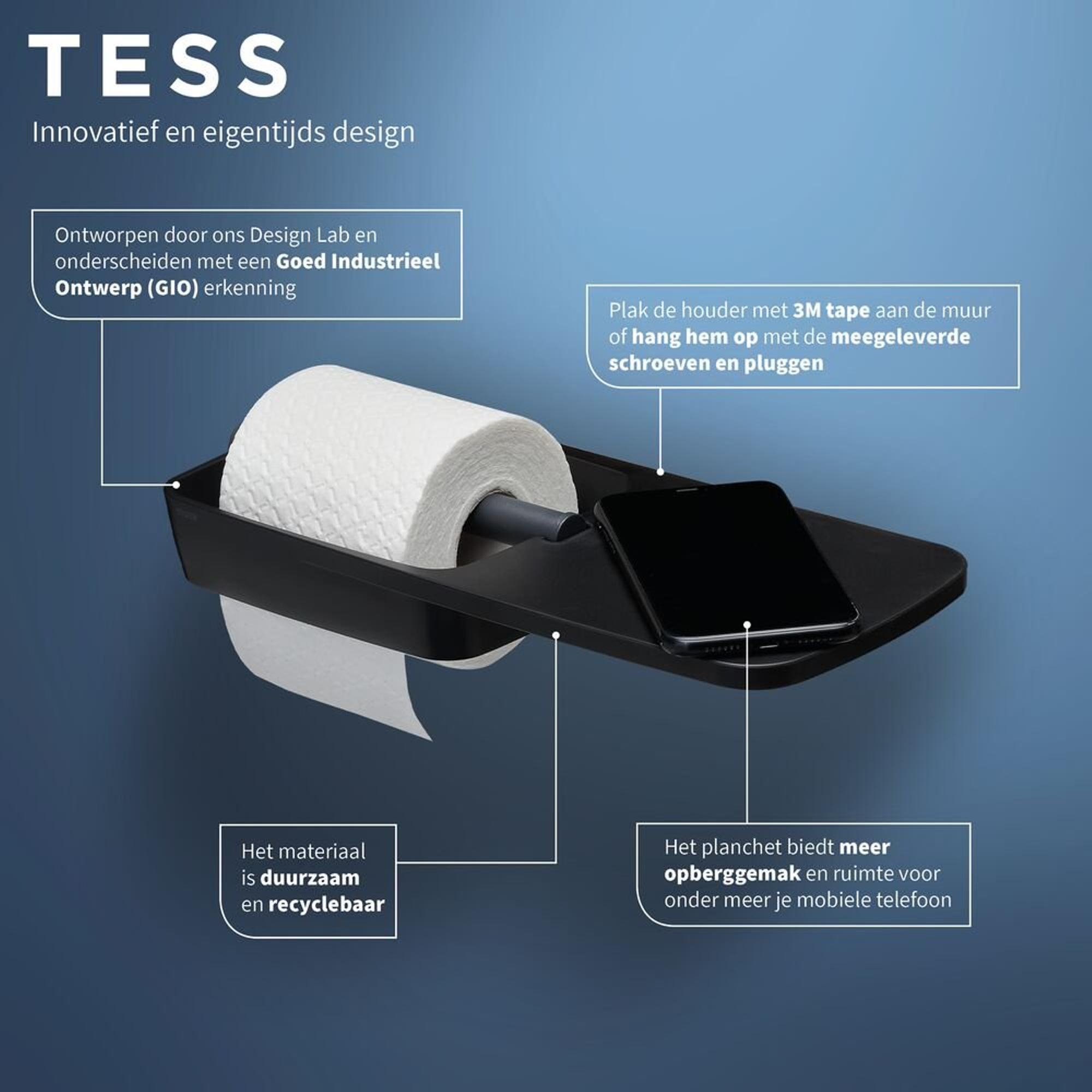 Tiger Tess Porte-rouleau de papier toilette - avec tablette - auto-adhésif/perçage - noir/anthracite