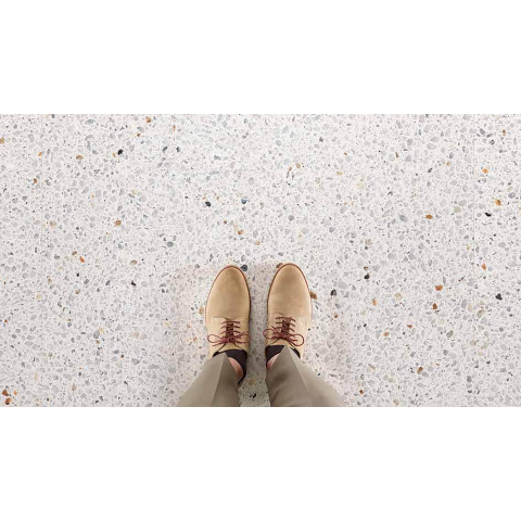 Avec un format de 60x120 cm, vous faites entrer un véritable point de mire dans votre intérieur. Le grand format réduit le nombre de joints, ce qui donne à votre sol un aspect visuellement plus vaste et plus serein. C’est idéal pour les salles de bains, les toilettes et les pièces de vie dans lesquelles vous souhaitez créer une ambiance d’hôtel de luxe ou une atmosphère de spa moderne. L’impression multicolore inspirée du terrazzo apporte dynamisme et profondeur, sans rendre l’ensemble trop chargé. Justement parce que les couleurs se fondent harmonieusement les unes dans les autres, vous pouvez facilement associer ce carreau à d’autres matériaux comme des carreaux effet béton, effet pierre naturelle ou effet bois. Vous harmonisez ainsi l’ensemble de l’espace et faites du sol un socle élégant pour le reste de votre intérieur.