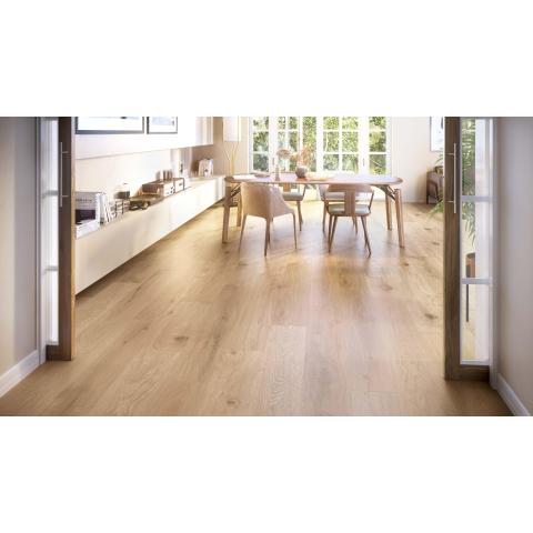 Le veinage subtil du bois, le format allongé des lames et la douce couleur honey créent ensemble une atmosphère particulièrement chaleureuse dans votre salle de bains ou votre pièce de vie. Là où le vrai bois est sensible à l’humidité et aux rayures, ce carrelage céramique conserve sa couleur et son apparence pendant des années, même en cas d’usage intensif. La finition mate évite les reflets gênants et offre un rendu visuel apaisant, ce qui donne à la pièce une impression de grandeur et d’harmonie. Si vous posez les lames dans le sens de la longueur de la pièce, vous la ferez paraître optiquement plus longue